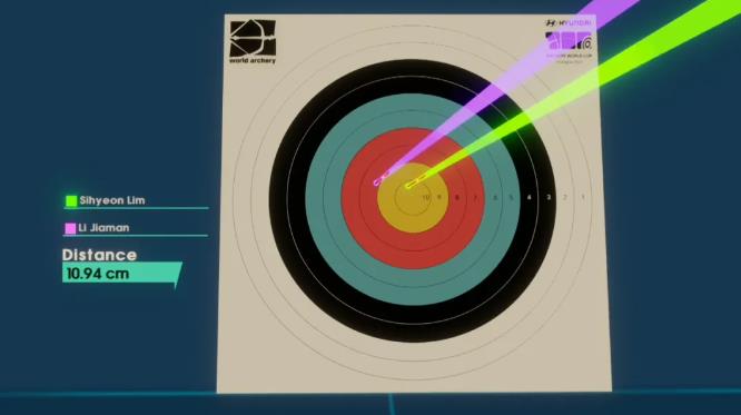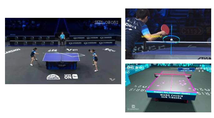 具体来说,该方案能为射箭赛事提供“轨迹、射程、箭矢高度、射速和靶上距离”五种信息,用精准数字辅助赛事解读。而在兵乓球赛事中,实现超高速回放画面中AR可视化呈现乒乓球的转速转向,以及AI实时采集落点和轨迹数据,实现多种形式的数据可视化呈现。