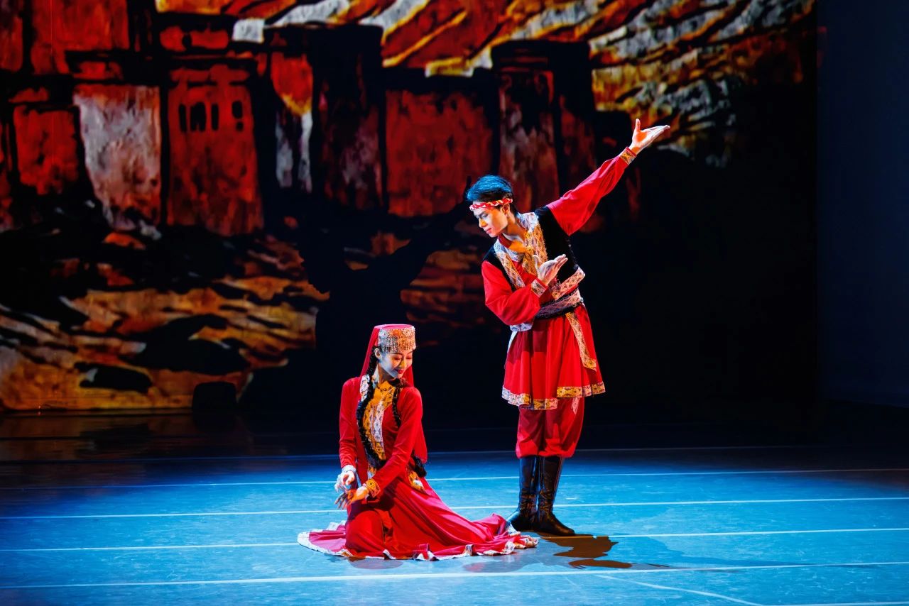 这是上海歌舞团携手新疆喀什地区歌舞剧团以“讴歌新时代”为主题,结合“一带一路”相关内容联合创作的原创舞蹈。作品采用现代舞结合民族舞的形式呈现,于舞台上与经典对话,为沪喀文化交流留下实质性文艺成果。