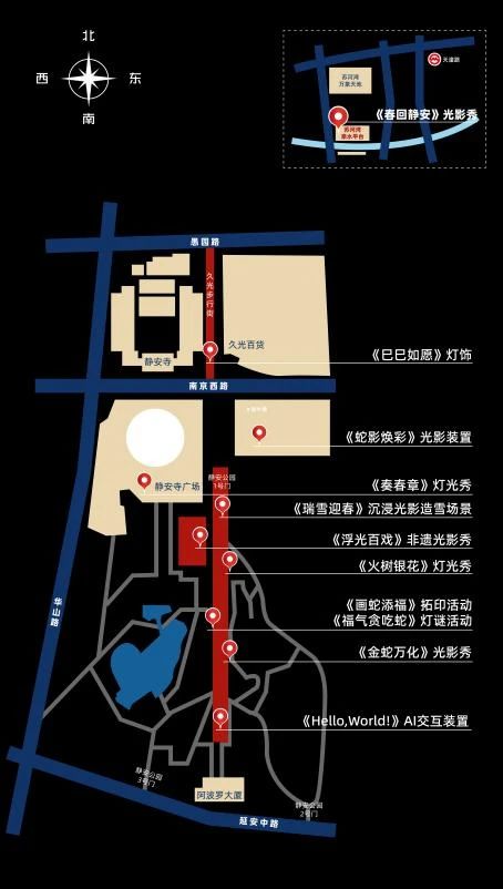 在此新春佳节之际,我们诚邀广大市民游客走进静安,沿着光影的轨迹,共同留下一段难忘的蛇年春节记忆。
