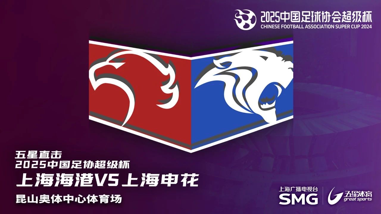 2月7日傍晚18:00起,上海广播电视台看东方APP、五星体育电视端及新媒体平台将带来“五星直击·2025中国足协超级杯”大直播。