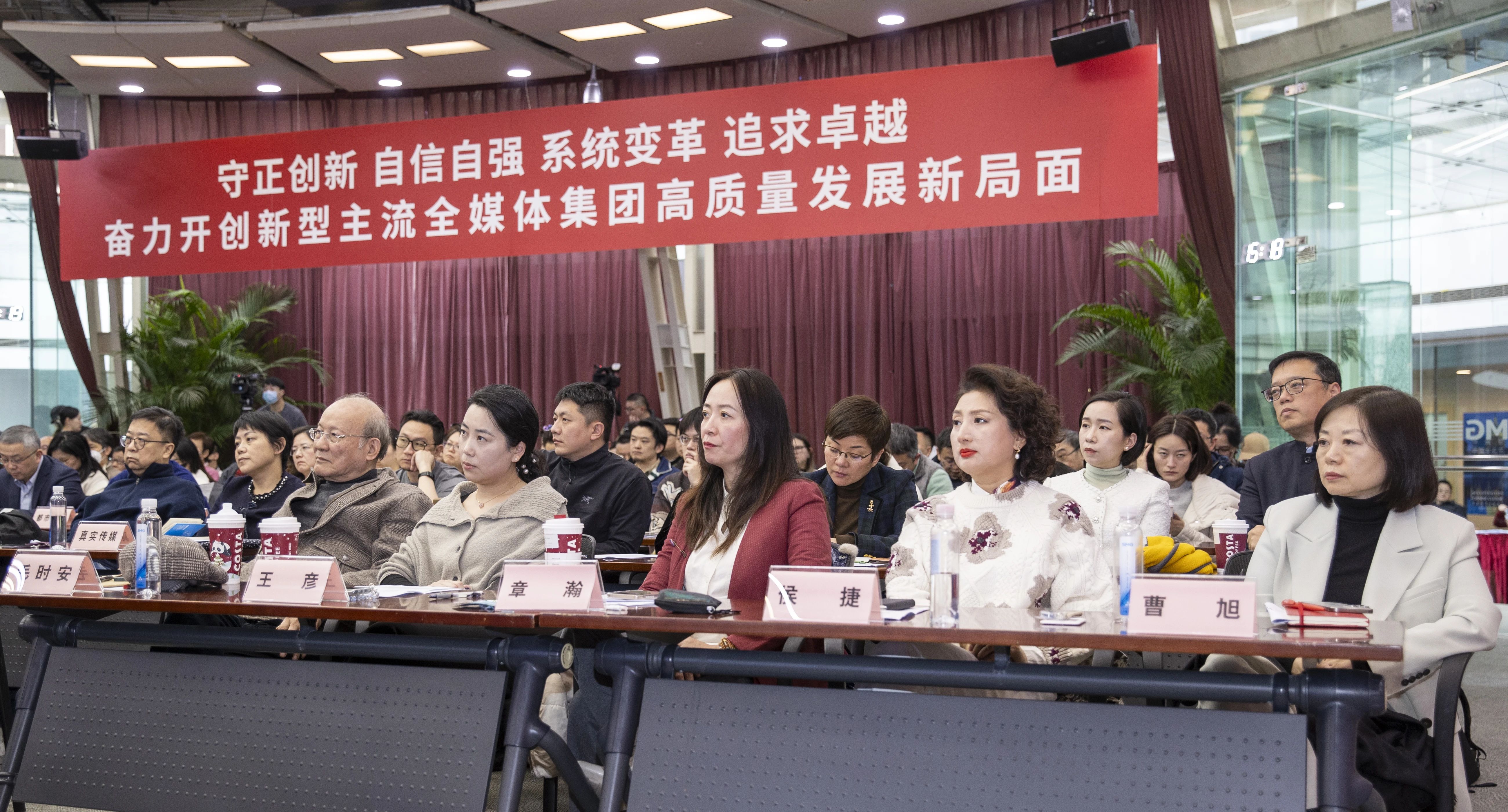 台(集团)领导成蔚、李蓉、张国新、陈思劼,各单位部门负责人、业务骨干、播音员主持人以及东方娱乐相关工作人员参加分享会。
