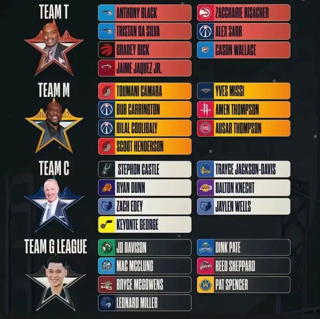 3支全明星队+新秀冠军队同场竞技