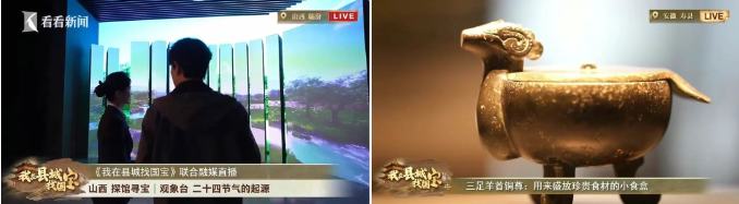 而融媒联动直播也充分展现了文物背后的文化魅力。陕西眉县博物馆的战国青铜扁壶,出土时仍装有战国时期的美酒,这一发现引发了观众对古代酿酒技术的好奇。山西陶寺遗址博物馆通过多媒体互动手段,复原了陶寺观象台的观测场景,让观众仿佛穿越时空抵达了历史长河的另一端。