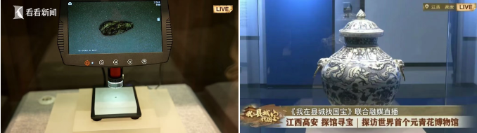 在10场融媒联动直播中,远溯1100年前长江中下游地区早期的新石器时代,走访浙江金华浦阳江县的上山遗址,探寻到本系列里“最小”的国宝——用显微镜才能看清的炭化稻米,揭开万年稻作文化的神秘面纱。近至600年前元青花的制作技艺,在江西高安世界首个元青花博物馆,发现全国唯一一件保存完好的完整盖罐——元青花云龙纹兽耳盖罐,体现了元青花的巅峰水平和独特魅力。