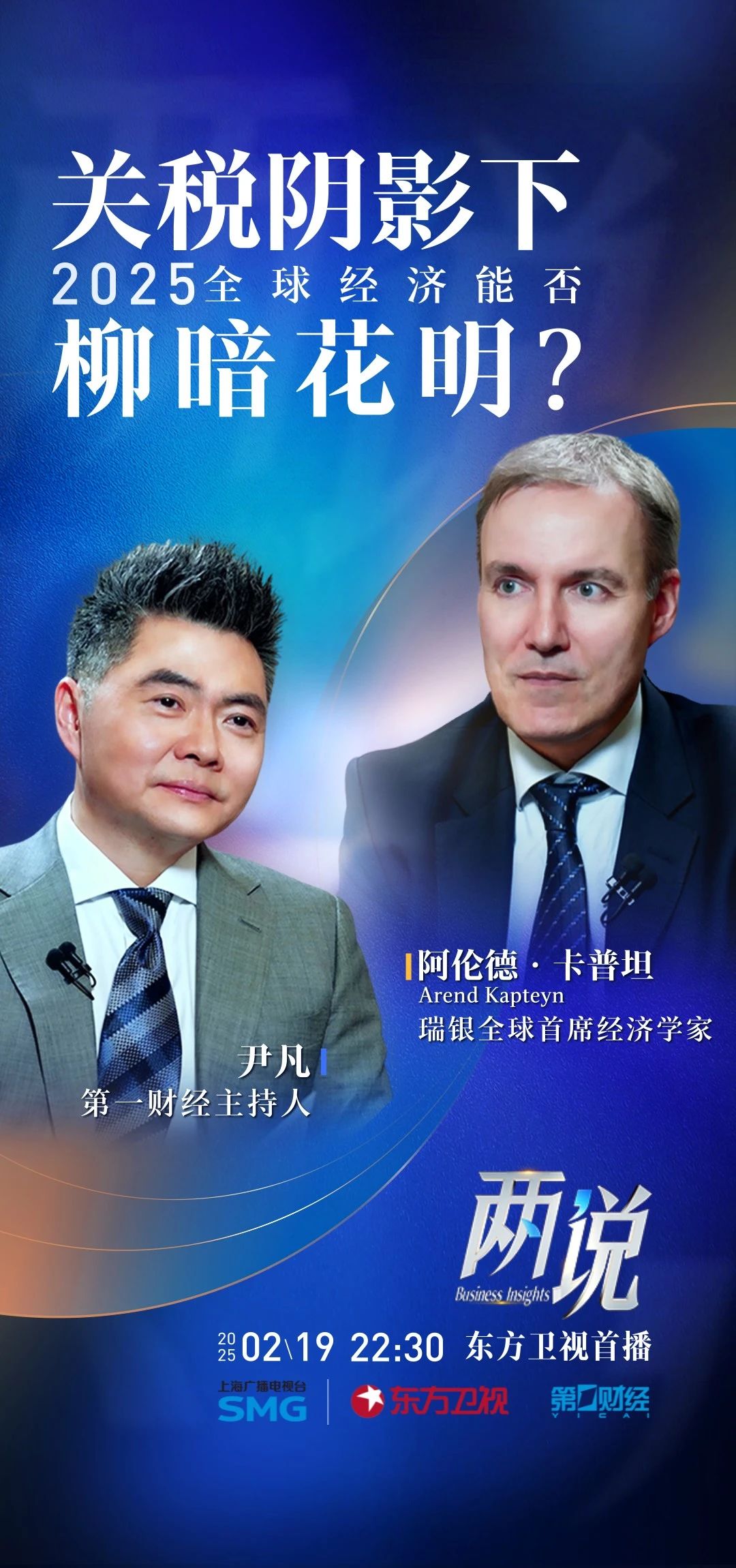 “一财,两说,三思笃行”,全新财经洞察节目《两说》2月19日起正式亮相东方卫视。节目通过第一财经与顶级专业人士的共创,以专业、深度、独到见解为标尺,通过巅峰对话的表达样态,发现、探讨与深入思考经济领域的前沿热点问题。