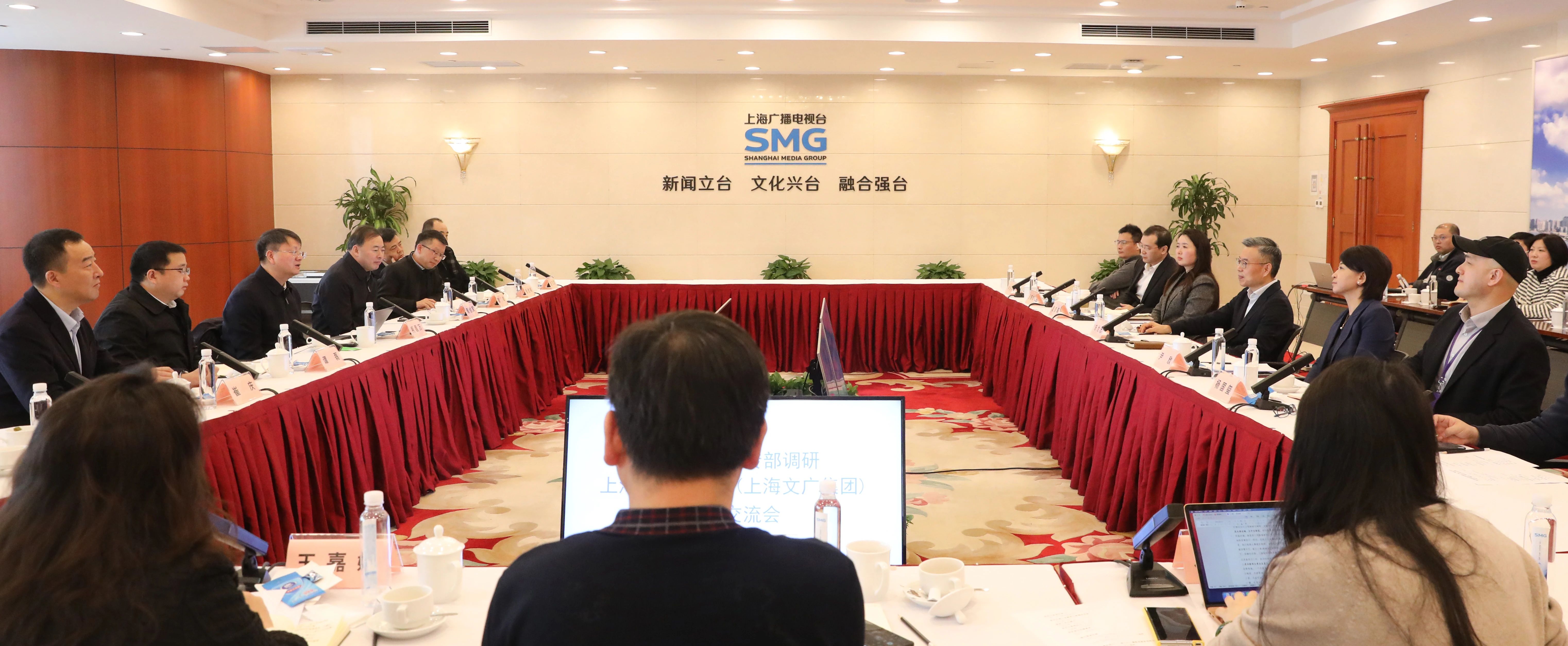 方世忠对调研组一行的到访表示欢迎,介绍了上海广播电视台(集团)在全国率先推进主流媒体系统性变革的探索实践,详细阐释了“新闻立台、文化兴台、融合强台”的核心战略和“智能化、超清化、移动化”的发展方向。他表示,台(集团)新一轮媒体改革主要突出三个重点:一是大力瘦身强体,提升主流媒体核心竞争力,重构媒体生产力布局,推动优质内容、专业人才、新闻资源向东方卫视主频道汇聚,向看东方移动端主平台转移,向新闻制播主业和优势领域集中发力,不断提升新闻舆论传播力、引导力、影响力和公信力。二是突出移动优先,重构全媒体生产传播机制,坚持技术驱动,推进传播革命,激活第一资源,全力打造自主可控的移动端平台,不断做强国际传播超级IP矩阵,推动从“为播出服务”向“为传播服务”的根本转变,引导主力军全面挺进互联网主战场。三是坚持内容为王,努力让正能量产生大流量,聚焦2025“内容质量年”,坚定“好内容铸就真未来”的理念,锻造让好内容具有好创意、好传播、好经营的能力本领,努力让SMG出品更卓越,实现正能量和大流量的有机统一。他希望,双方继续加强交流、深化合作,聚焦新闻制播、内容创制、技术赋能、人才交流等关键领域,共同蹚出一条符合全媒体生产传播规律、凸显自身独特优势的主流媒体系统性变革之路。