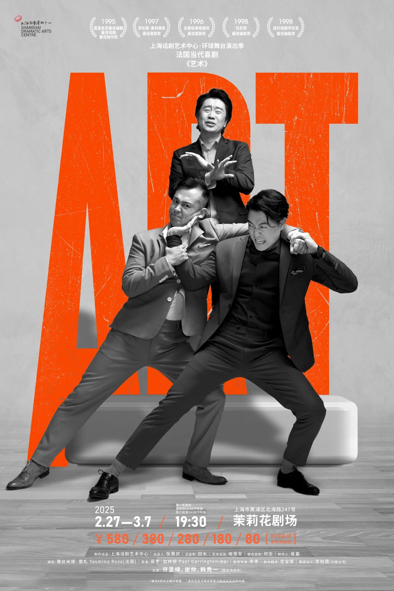 《艺术》于1994年在巴黎香榭丽舍喜剧院首演,追求展现人性与艺术的复杂关系。此后,作品相继被译成40种语言,走向了全球舞台。