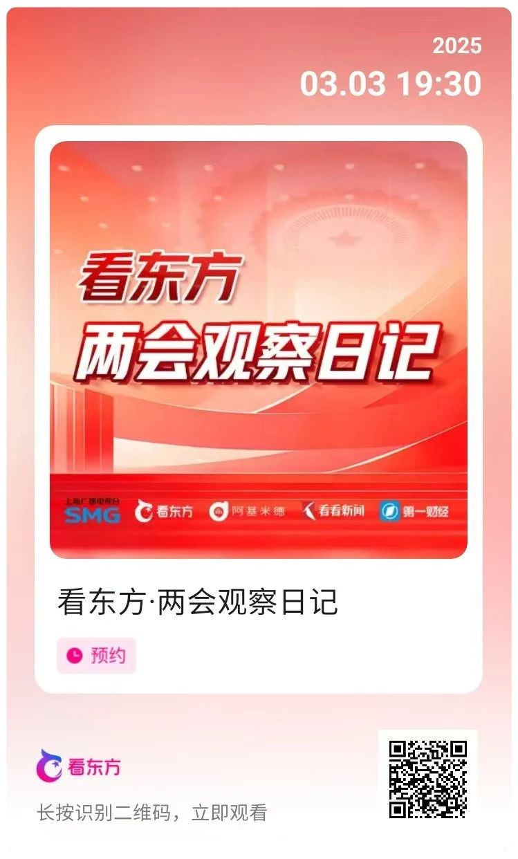 用户下载看东方APP后,可预约直播并接收开播提醒,全程跟进两会动态。微信视频号“SMG看东方”每日推送精选片段,方便用户一键转发分享热点议题。用户还能收藏日程表,按自身关注领域,精准获取政策、经济、社会等议题深度解析。