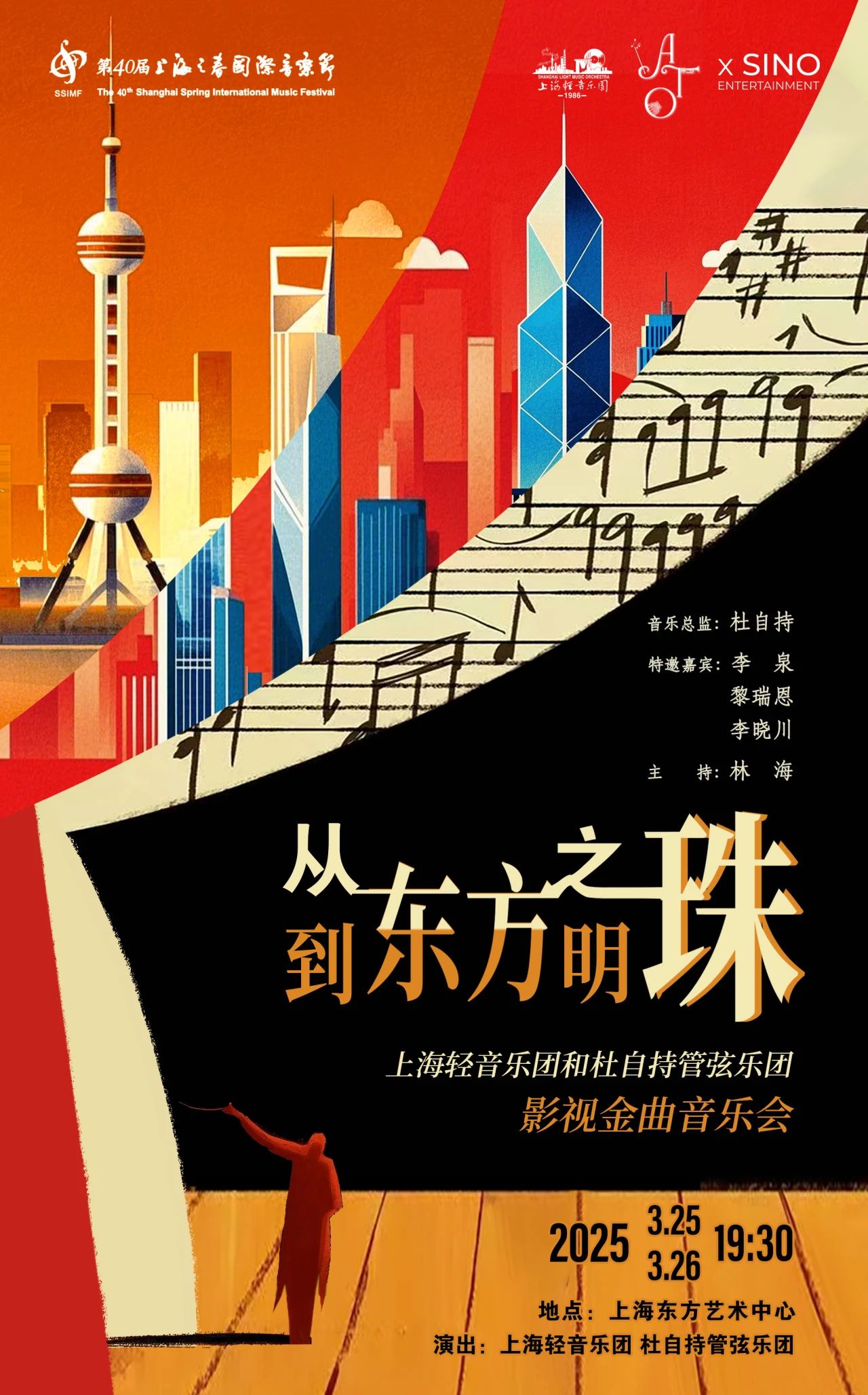 3月25日和26日,《从东方之珠到东方明珠》——上海轻音乐团和杜自持管弦乐团影视金曲音乐会,将于第40届上海之春国际音乐节期间上演。