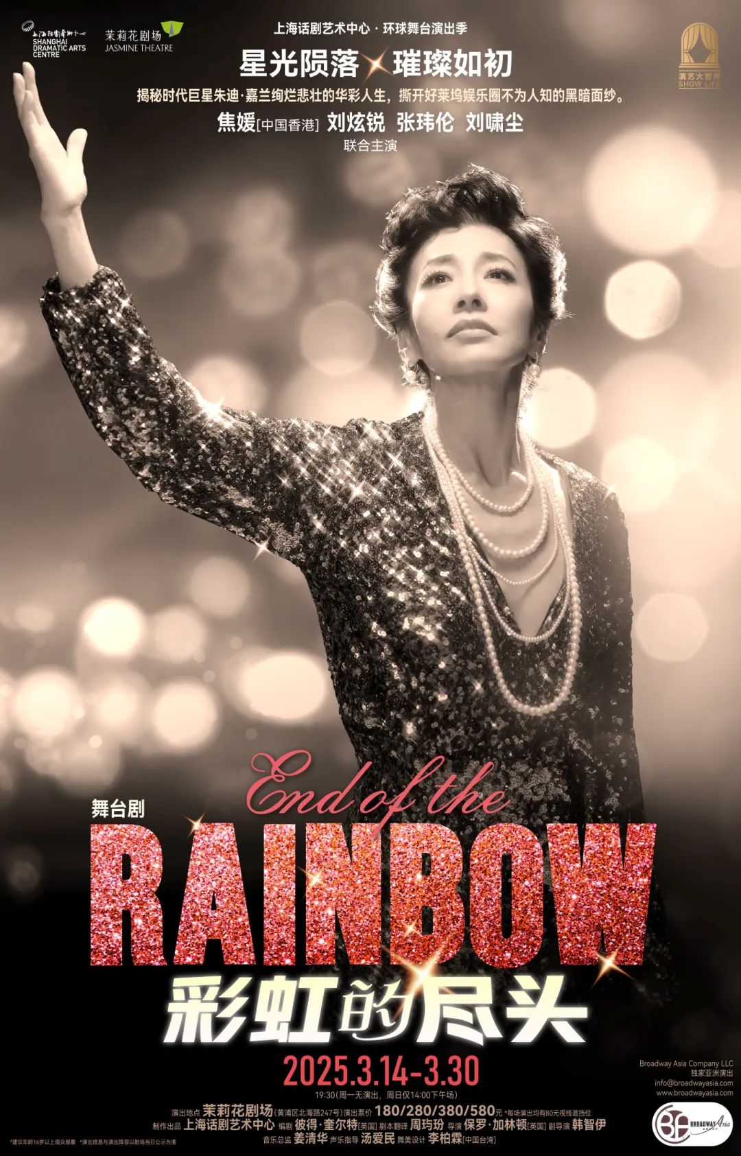 女主角朱迪·嘉兰由香港地区舞台剧领域标志性人物焦媛饰演,她不仅精准捕捉了朱迪标志性的嗓音、姿态和舞台魅力,更深入挖掘传奇巨星内心的脆弱与挣扎,细腻动人又充满力量感的表演和演唱,让观众在笑泪之中再一次被其所经历的辉煌与悲怆所震撼。