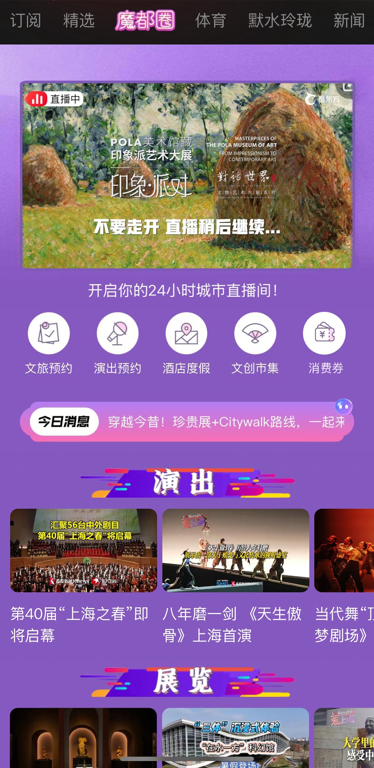 在上海加速建设国际消费中心城市、促进“五型经济”发展的战略背景下,上海广播电视台举全台之力打造的移动端战略平台“看东方”于2024年11月焕新出发。此番推出的核心板块“魔都圈”将以文旅商体展“五维联动”为切口,在助力提振消费、建设国际消费中心城市上做文章,持续探索构建“内容种草—预约购票—消费转化”全链路闭环,为城市消费升级注入强劲动力。