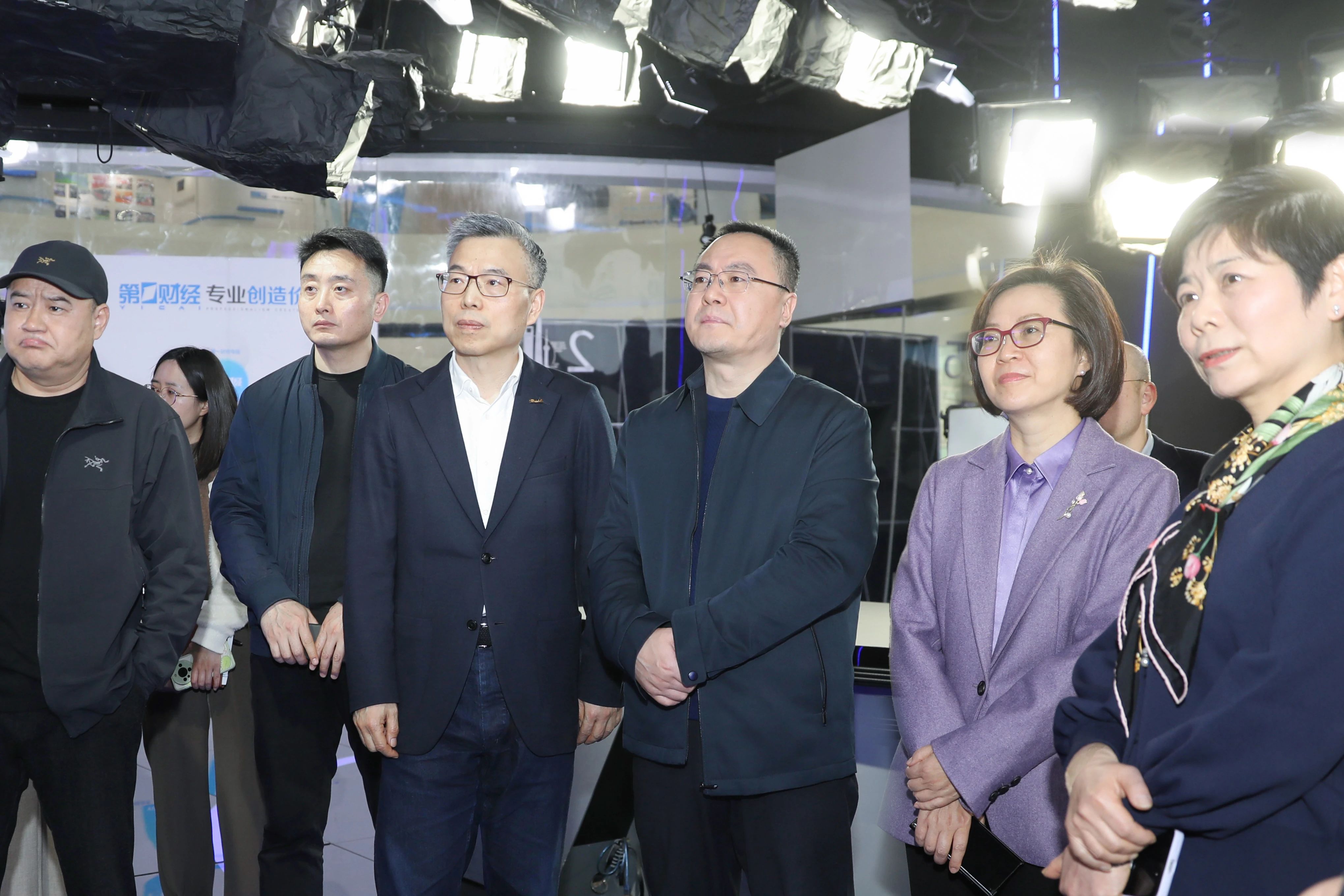 调研组一行还实地察看了上视大堂智慧广电展示区、新媒体平台及第一财经演播室、融媒体中心演播室,详细了解上海广播电视台“智能化、超清化、移动化”建设和新媒体四大旗舰产品运营情况,重点听取新闻宣传、国际传播以及第一财经锻造头部财经平台情况,并观看财经垂类“星翼大模型”运行演示。