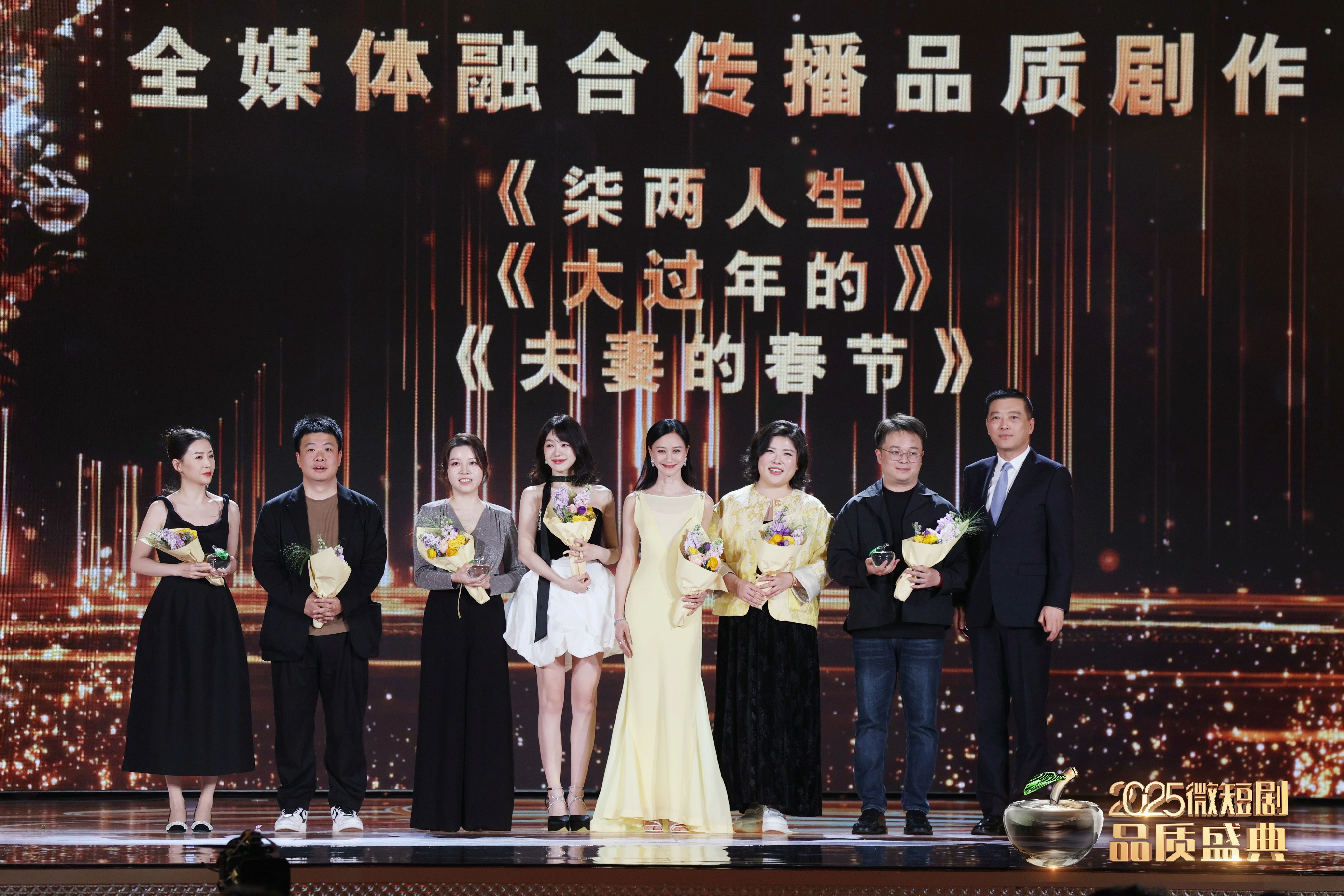 近年来,随着微短剧业态兴起,越来越多的创作者通过微短剧的形式反映现实生活,在家庭、情感、都市等多元化题材中融入社会热点和人文关怀,涌现出一批品质作品。越来越多的微短剧走出国门,成为席卷全球的新兴文化潮流,向全球观众展示中国的文化魅力,展现出作为新质生产力的澎湃动能。盛典上,以上海广播电视台、国家广播电视总局广播电视规划院、中国网络视听协会联合发布的“品质微短剧融合传播指数”为主要依据,《夫妻的春节》《柒两人生》《大过年的》脱颖而出,喜获“全媒体融合传播品质剧作”。这些作品不仅赢得了广大观众的热烈反响与广泛好评,还引领了行业的创作潮流,成为衡量微短剧品质的新标杆。