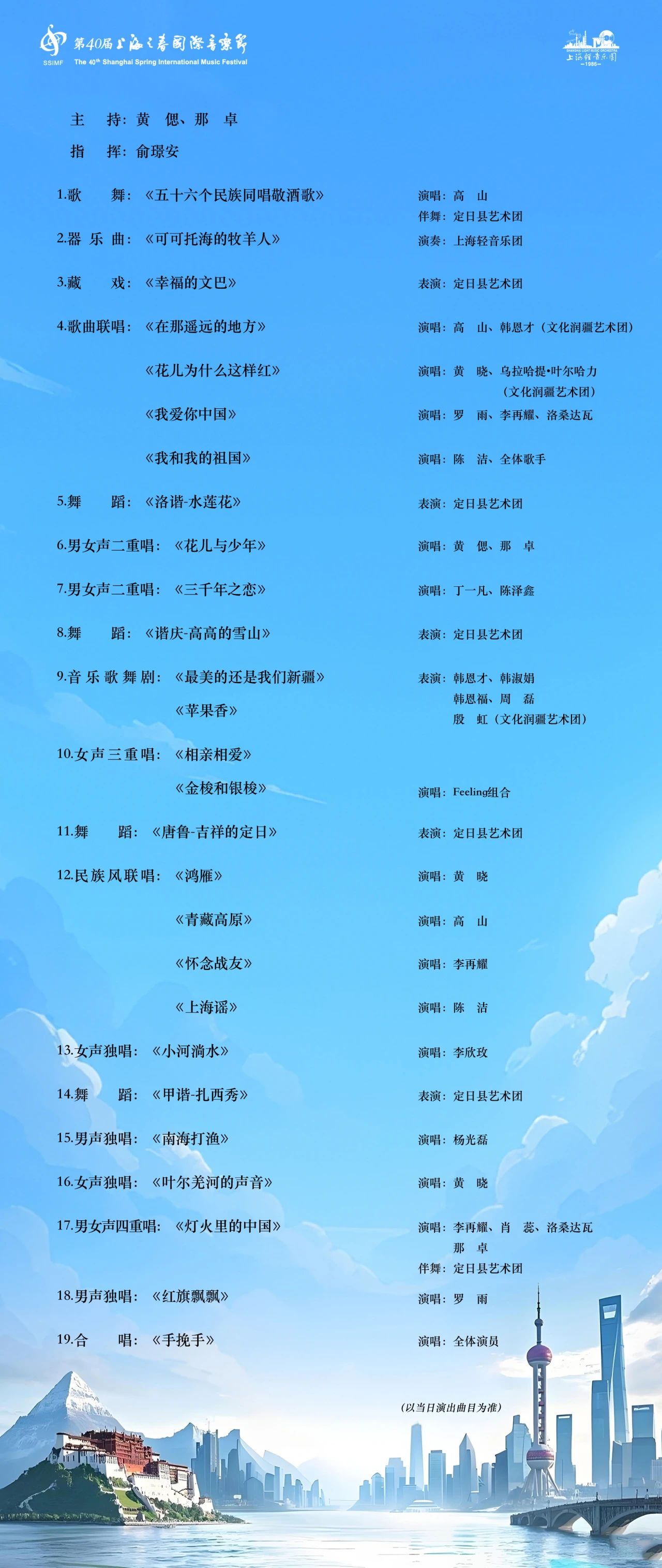 第40届上海之春国际音乐节期间,3月27日晚,将由上海市慈善基金会全程支持,上海轻音乐团与西藏定日县艺术团联手,在东方艺术中心呈现一场前所未有的“轻音乐+非遗”的魅力之旅!