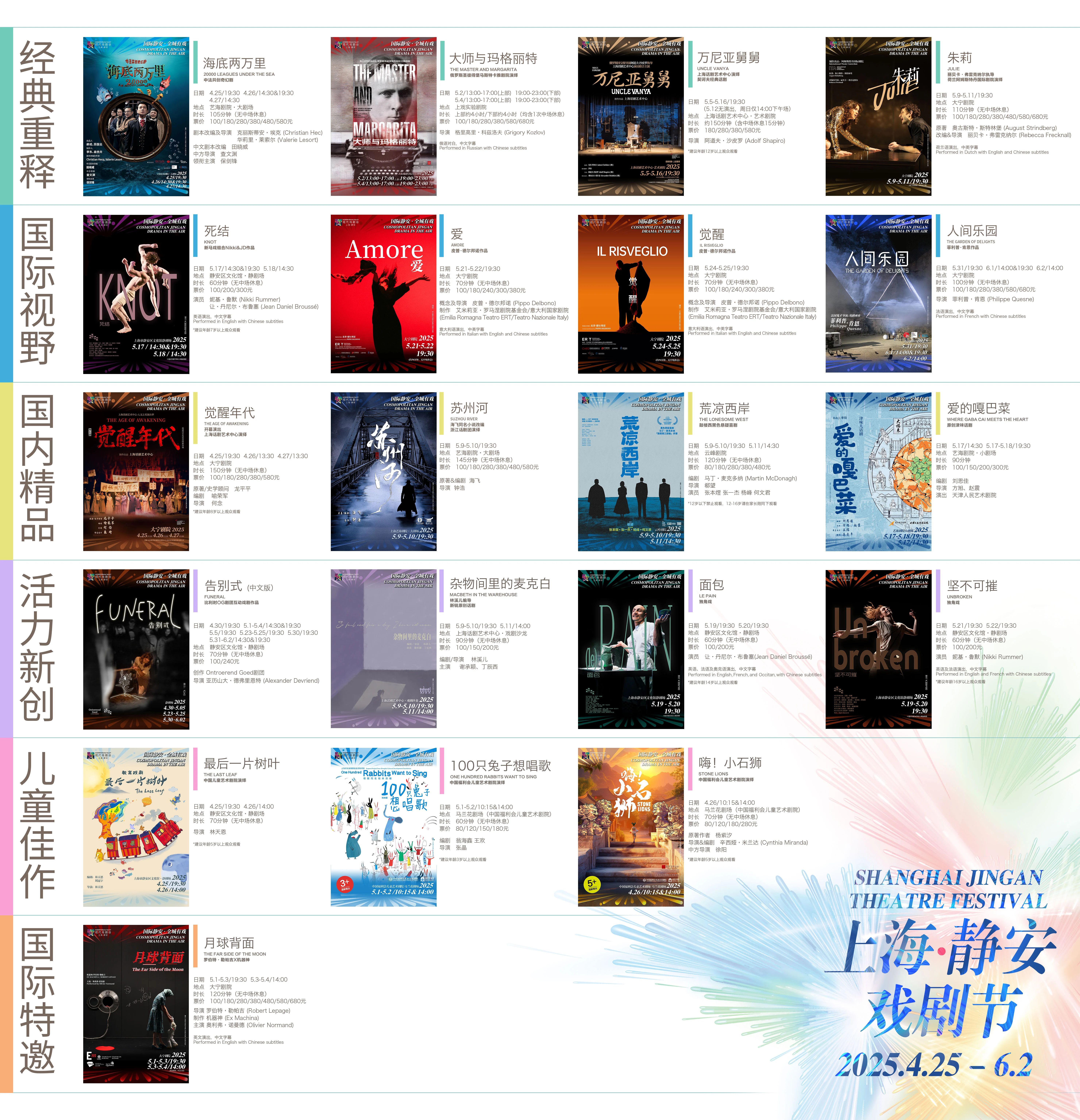 4月25日至6月2日,秉持“国际静安、全城有戏”主题,聚焦“名剧展演、全城有戏、壹戏剧大赏”三大经典板块,2025上海•静安现代戏剧谷联动全域资源,用前所未有的超长节庆周期打造一场全民共享、全城狂欢的文化盛宴。一级导演滕俊杰,加拿大跨领域艺术家罗伯特•勒帕吉,一级演员潘虹三位文化艺术界知名人士将担任艺委会成员。