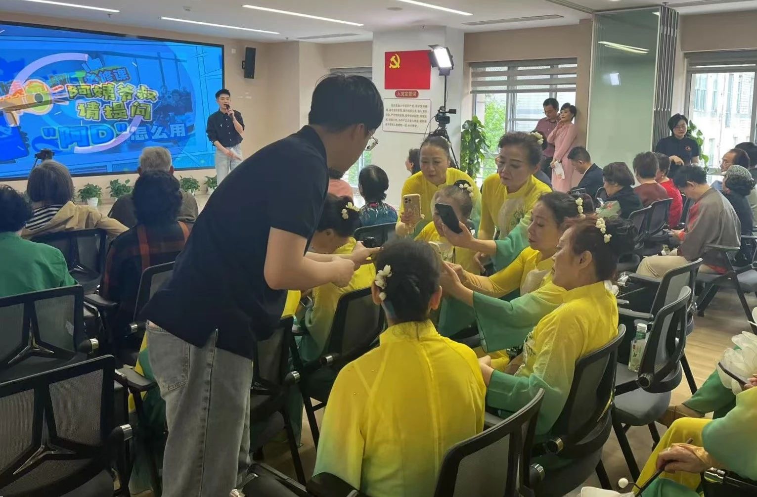 活动现场,社区居民们纷纷扫码进入“阿姨爷叔沟通群”,随时进行互动。小坊“手把手”地教阿姨爷叔们使用AI软件,帮助老人们跨越“数字鸿沟”。