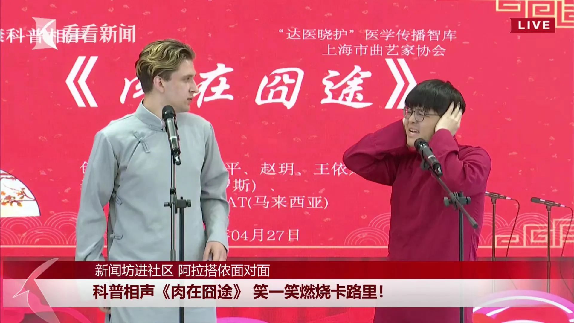 围绕当下最热的“减肥”关键词,上海交通大学的留学生主动请缨,献上相声《肉在囧途》为大家科普。中国人民解放军海军特色医学中心医生也来到现场,围绕减肥和其他相关的专业问题进行互动问答。健身教练还带领社区居民们一起动起来跳健身操燃脂。