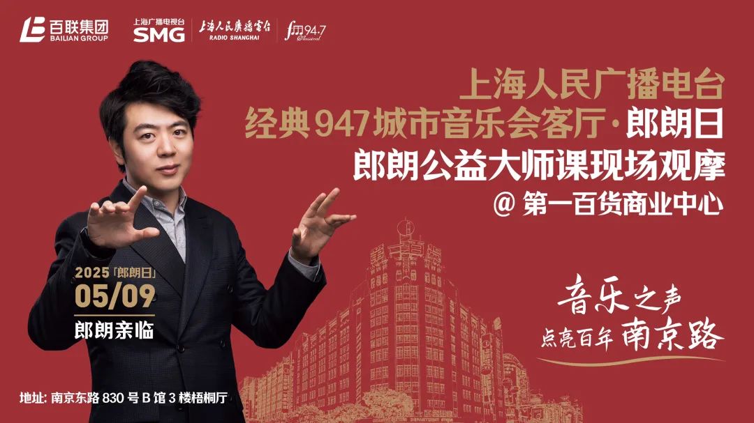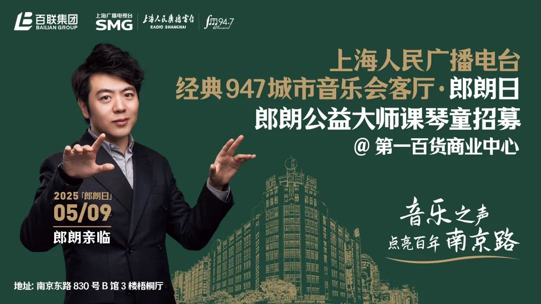 经典947联手上海百联集团在南京东路步行街的第一百货商业中心打造《经典947城市音乐会客厅》,用音乐之声点亮百年南京路。5月9日的「郎朗日」特别活动,郎朗将亲临现场聆听市民代表的精彩演绎、举办钢琴公益大师课。
