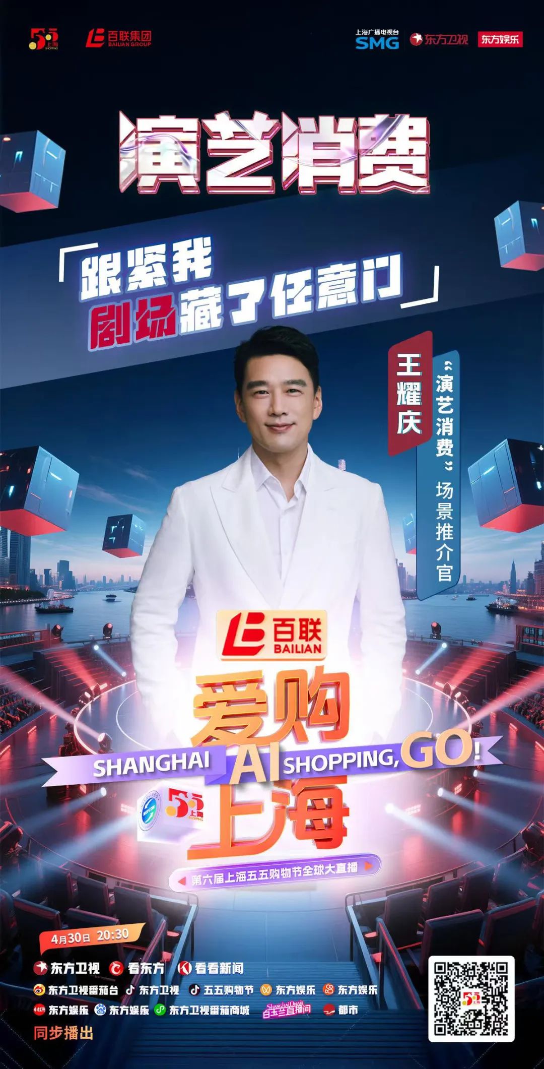 作为每年“五五购物节”的配套品牌节目,由上海市商务委员会指导,上海广播电视台创制的《爱购上海——第六届上海五五购物节全球大直播》4月30日率先在东方卫视及相关新媒体端与观众见面。