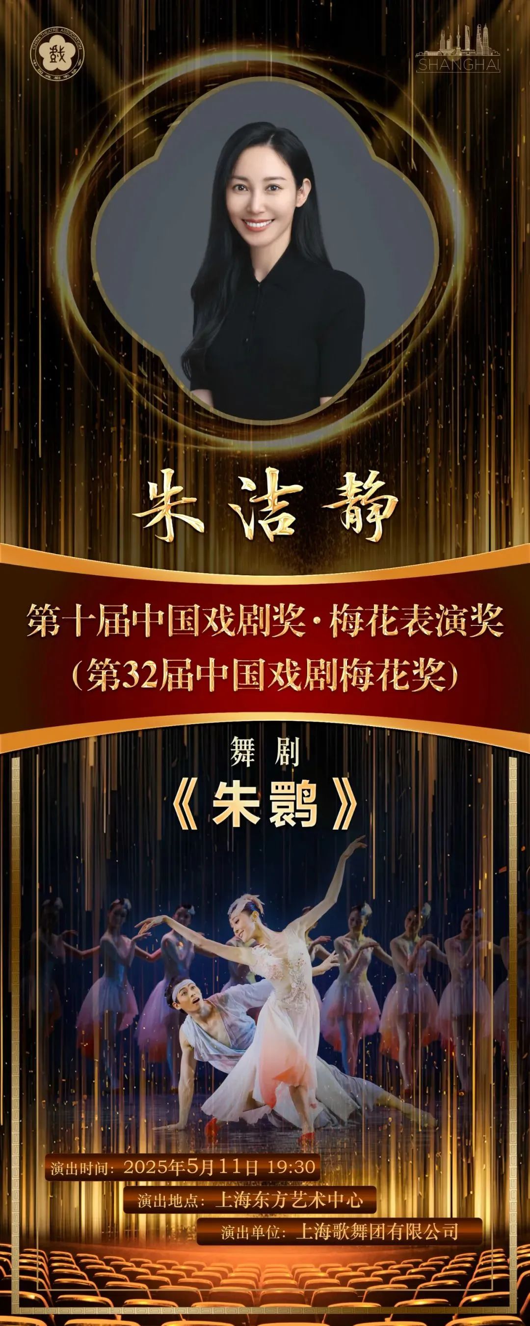 5月10日下午,朱洁静参评第32届中国戏剧梅花奖终评剧目——舞剧《朱鹮》媒体见面会在上海歌舞团举行,领衔主演朱洁静和王佳俊参加。