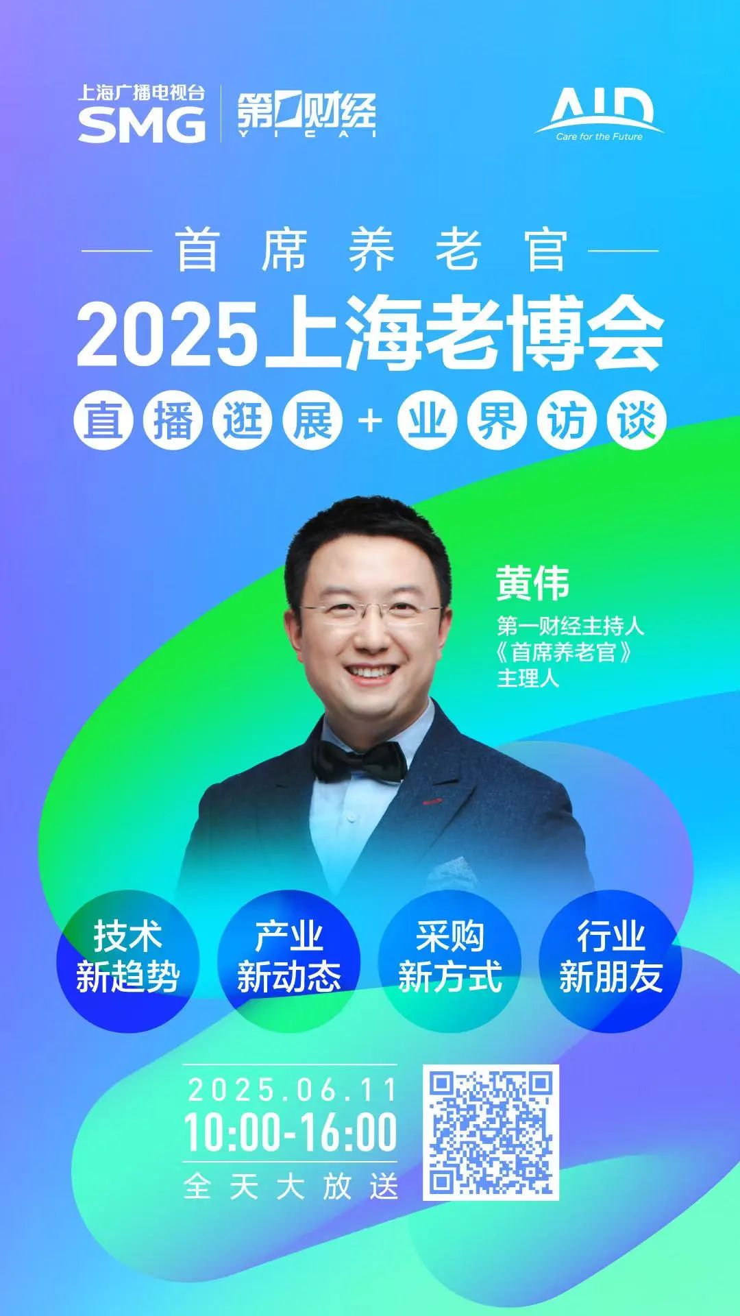 此外,第一财经《首席养老官》将在现场带来全天大放送。通过直播逛展、业界畅谈等形式,全面呈现丰富多彩的银发经济产业场景。
