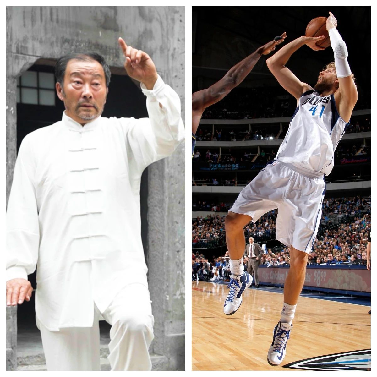 德克·诺维斯基凭借着二十年如一日打磨出的“金鸡独立”,在联盟中纵横多年,带领小牛队(现独行侠队)在2011年击败了如日中天的热火“三巨头”,夺得队史首冠。以此致敬这份“一招鲜”里的坚守与温柔。