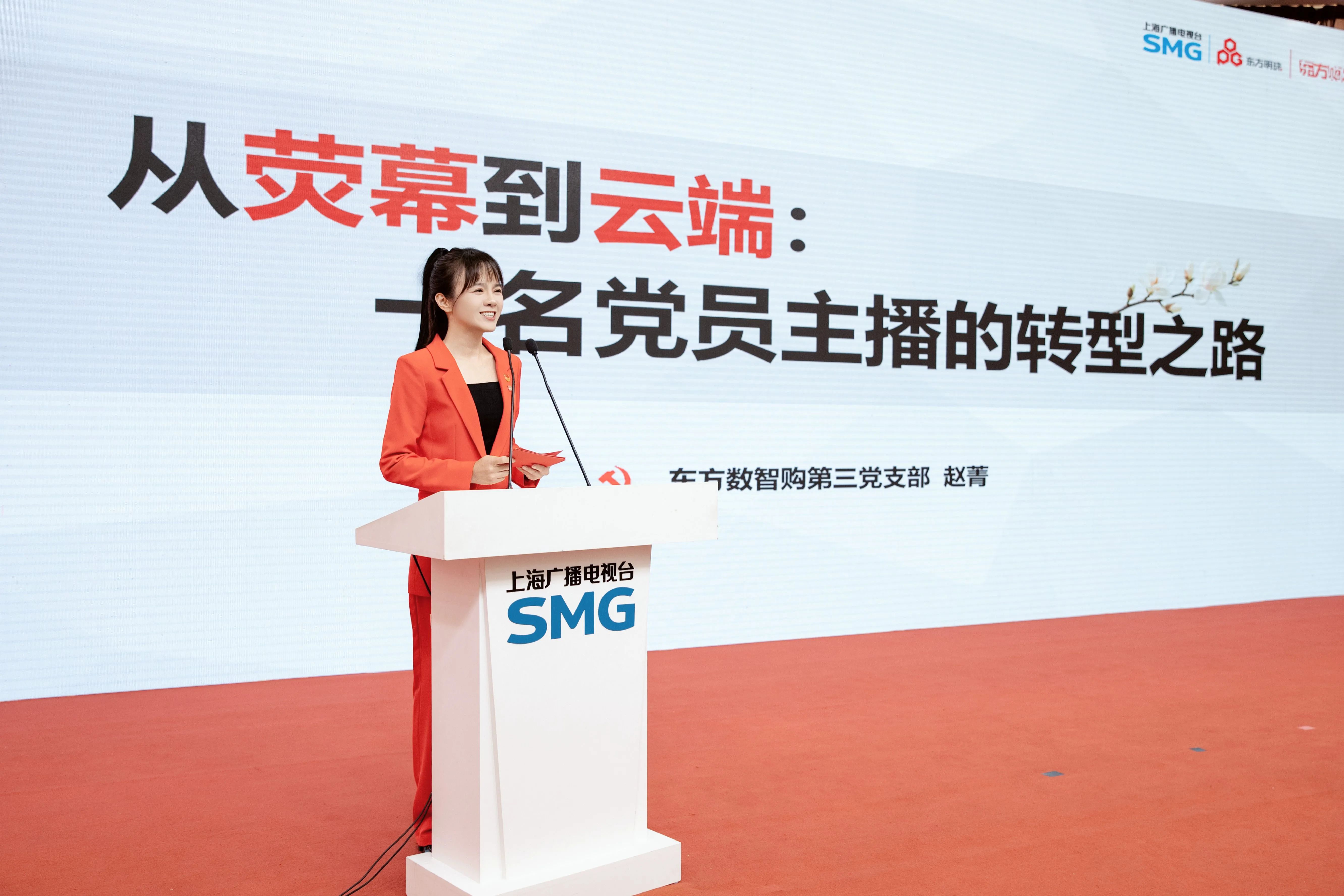 职业生涯前半段,作为电视购物大屏主持人参与近万场电视直播;如今,转战小屏移动端开辟新天地,与同事们并肩转型。优秀共产党员代表、上海东方数智购商务有限公司新移动端中心“菁字招牌”主播赵菁由衷感慨,“改革转型并不可怕,可怕的是停止挑战。用实际行动践行党员的责任与使命,就是要锚定航向,卓越向前。”