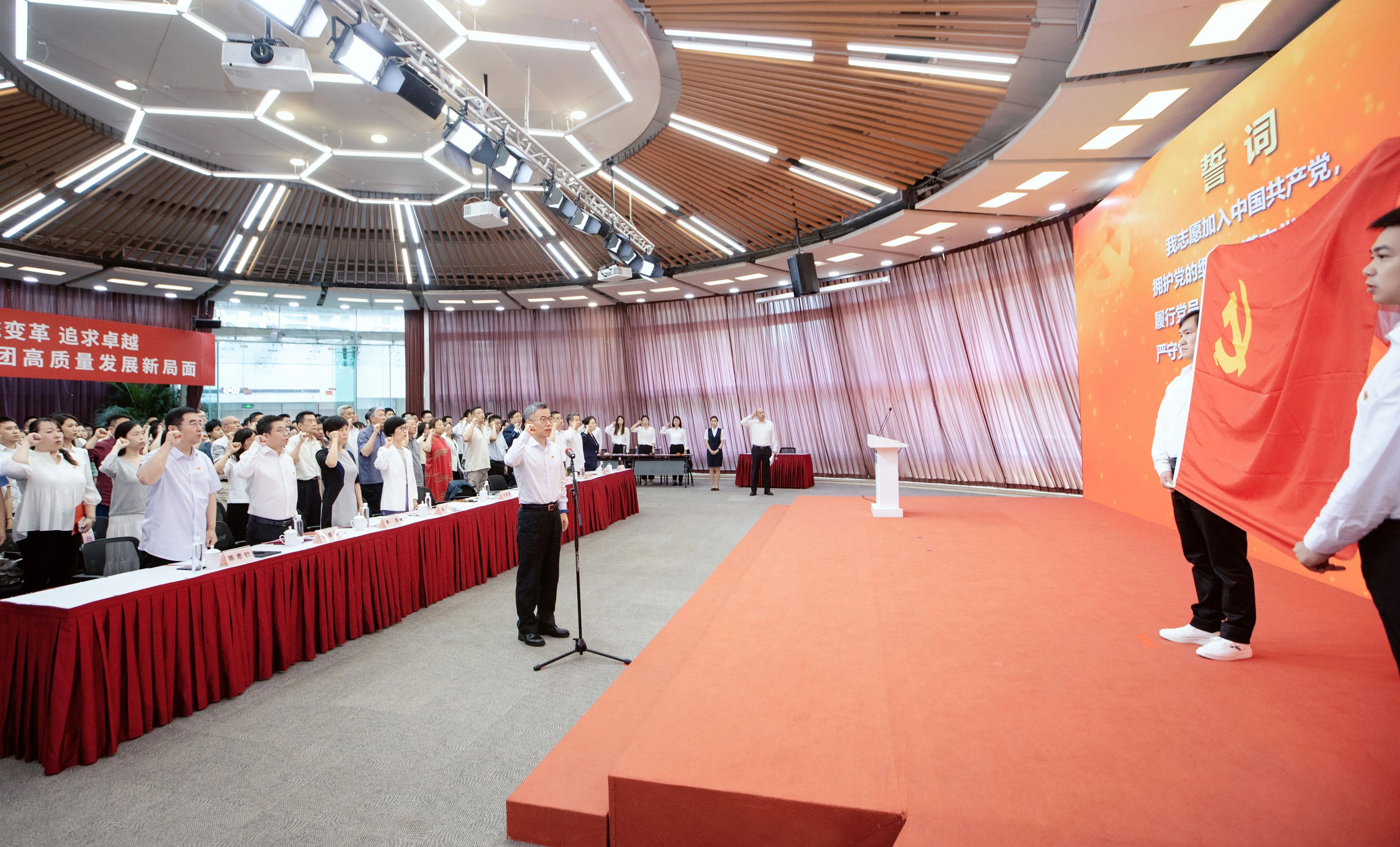 2024年以来,台(集团)各基层党组织共发展了57名党员。会议现场,在方世忠的领誓下,新老党员再次重温入党誓词,坚定理想信念,强化责任担当。