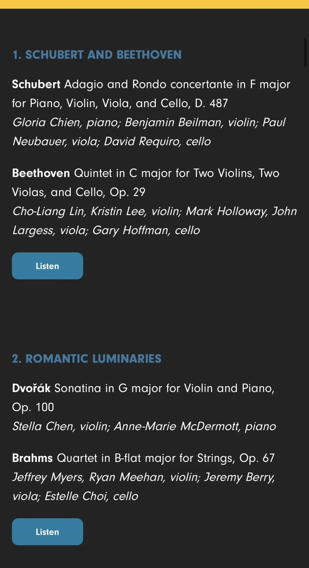 值得一提的是,林肯中心室内乐协会不局限于“标准曲库”,而是以灵活的编制、深度的策划,持续探索室内乐体裁的当代价值与未来方向。本次登陆经典947的音频节目正是来自林肯中心室内乐协会与全美公共广播联盟联合推出的“国家广播系列”,精选2023–2024乐季52场现场录音,覆盖莫扎特、勃拉姆斯、德彪西、巴托克等作曲家专辑,展现国际顶尖艺术家与新生代之间的火花,呈现“黄金时代室内乐”与“当代创作”的双重风貌。