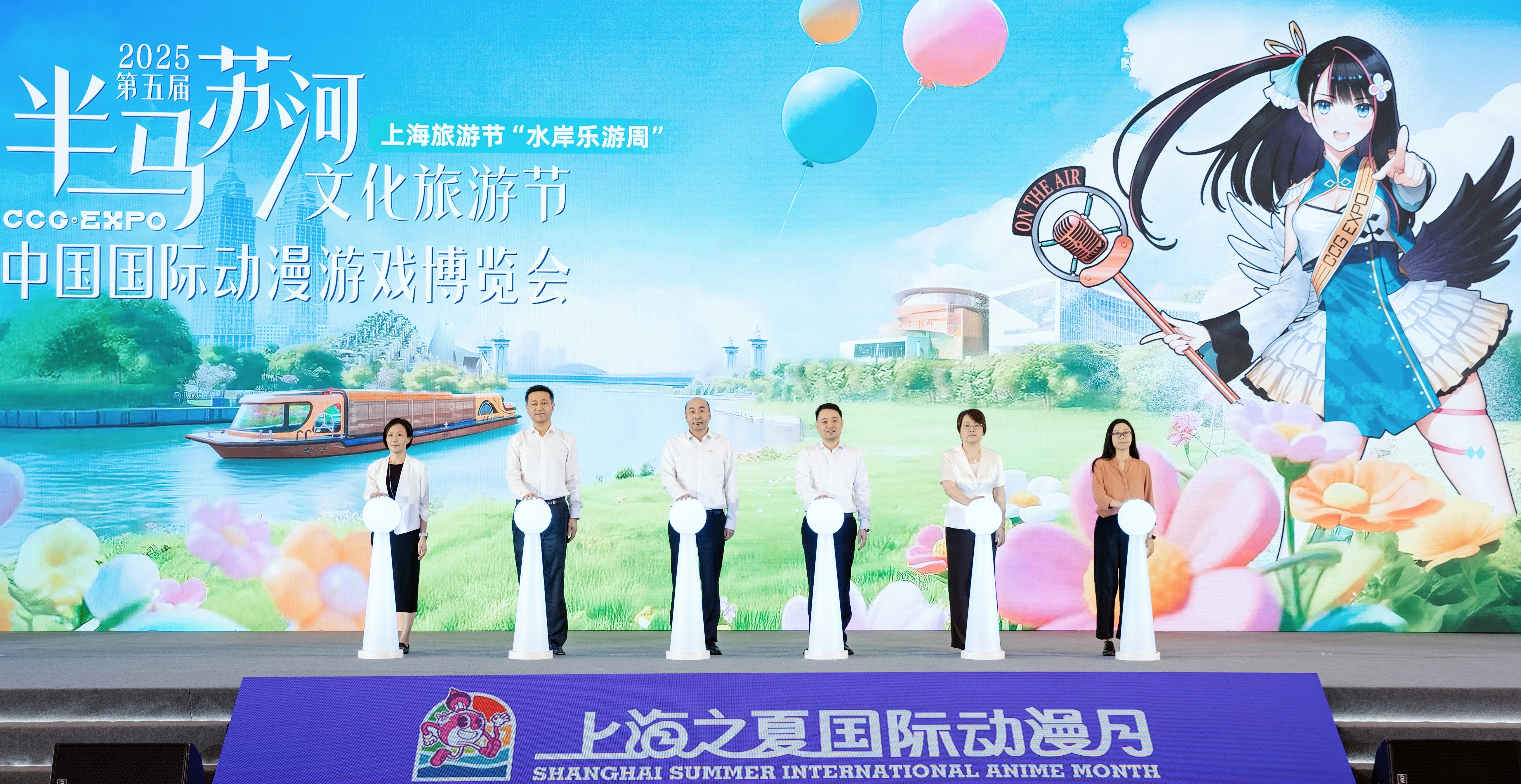上海市委宣传部副部长,上海广播电视台(上海文广集团)党委书记、台长、总编辑方世忠,普陀区委书记胡广杰,上海市委宣传部副部长、市国资委副主任黄斌兵,上海市商务委员会总经济师罗志松,上海市文化和旅游局党组成员、副局长金雷及其它相关方代表共同启动首届上海之夏国际动漫月。