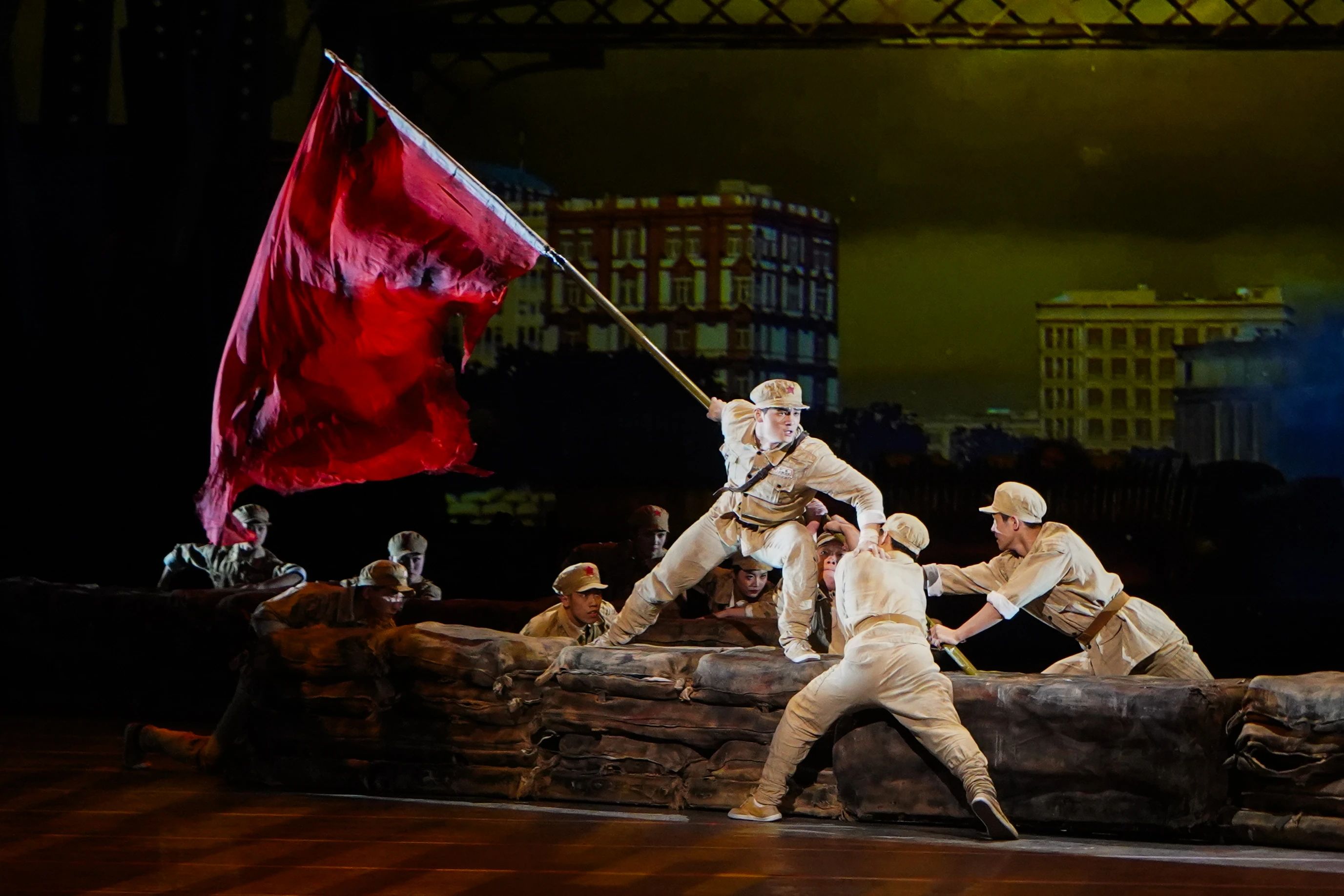 《战上海》运用杂技艺术传递红色文化的精神内涵,用青春和热血谱写了一曲经典的英雄主义赞歌。六年中,剧组轮换了多组演员阵容,新生代力量接力传承,始终维持高水准艺术品质和技术能力,将剧中人物的喜怒哀乐、家国情怀演绎得淋漓尽致。