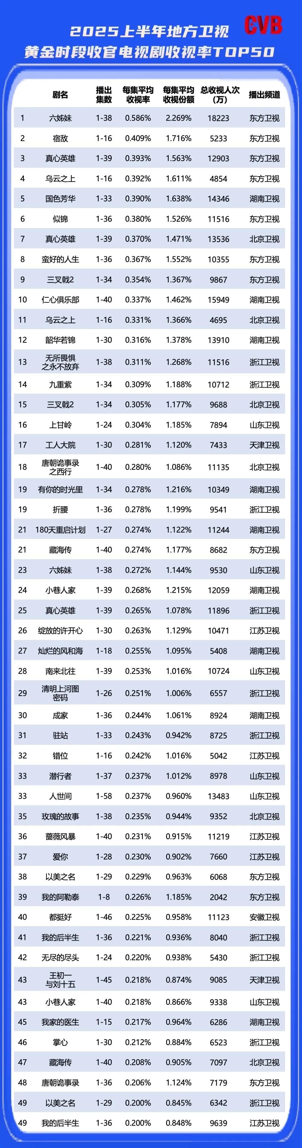 CVB2025上半年电视剧收视报告发布,SMG出品表现抢眼
