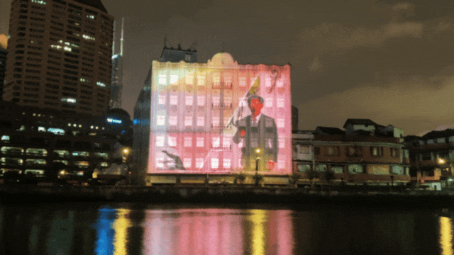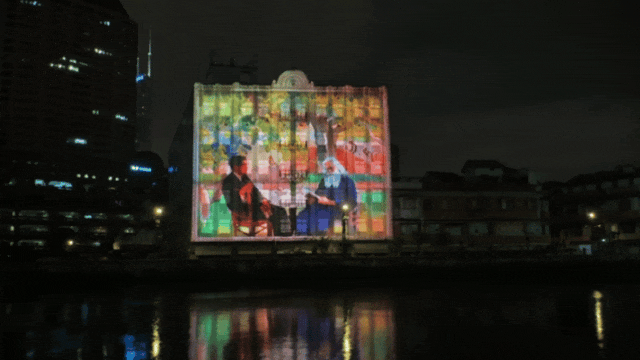 作为第三届“闪亮•上海”静安国际光影展(2025)常态化展映的重要组成部分,这场以苏州河畔建筑墙面为幕布的光影展演,用年轻趣味的方式,带领观众在全新视角下遇见一个会“卖萌”、懂幽默的艺术大师。