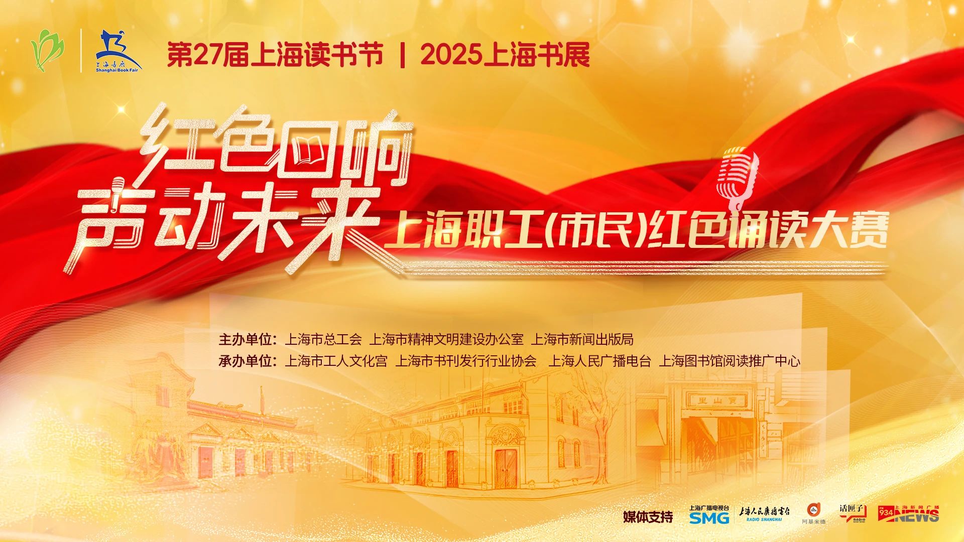 2025年适逢中国人民抗日战争及世界反法西斯战争胜利八十周年、中华全国总工会成立一百周年、上海总工会成立一百周年,为进一步深化红色文化铸魂育人,弘扬中华优秀传统文化,推动全民阅读,由上海人民广播电台承办,上海市振兴中华读书指导委员会联合市文明办、市新闻出版局、上海图书馆共同主办,面向全市职工和市民,以“红色回响 声动未来”为主题,在上海书展现场开展第二十七届上海读书节上海职工(市民)红色诵读大赛,引导职工、市民学习红色经典,赓续红色血脉,在诵读中触摸信仰温度,在传承中凝聚奋进力量。