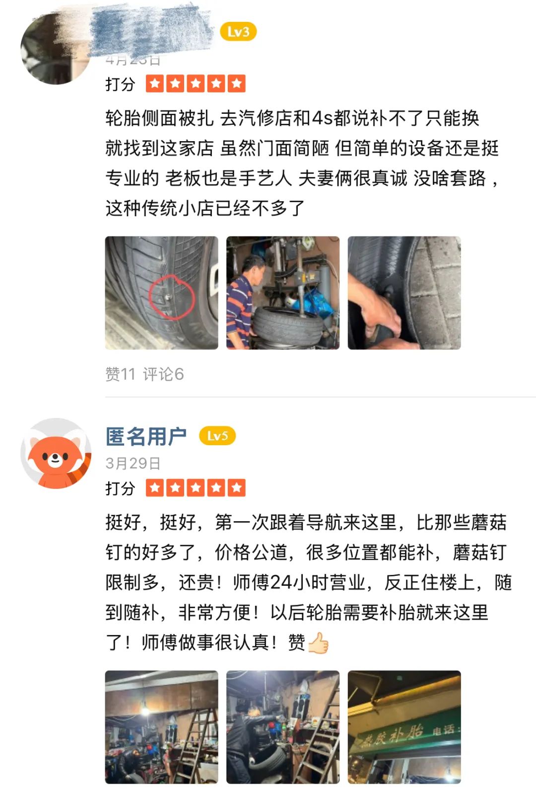 事情发生在前两天,施琰行驶途中因为汽车轮胎扎了钉子,附近4S店看了说需要热胶补,他们没有。于是,施琰只能全网搜索可修车的门店,好不容易找到一家修理铺。电话咨询得知,50元可以搞定。