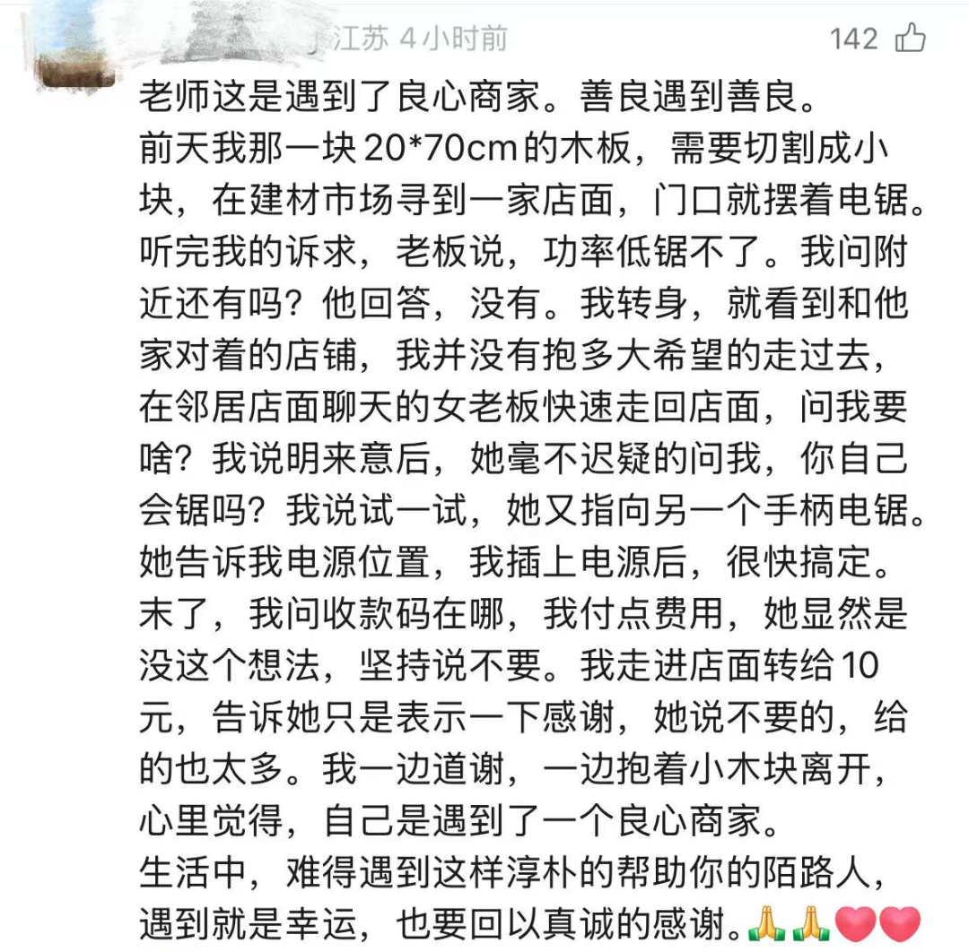 临走时,施琰付了100元,童师傅追着要还回来。施琰表示,多出来的70元其实是自己的“学费”,感谢童师傅教会了自己不论生活在什么样的境遇里,都可以美好而有尊严,都可以活成一盏灯,照亮别人前行的路。