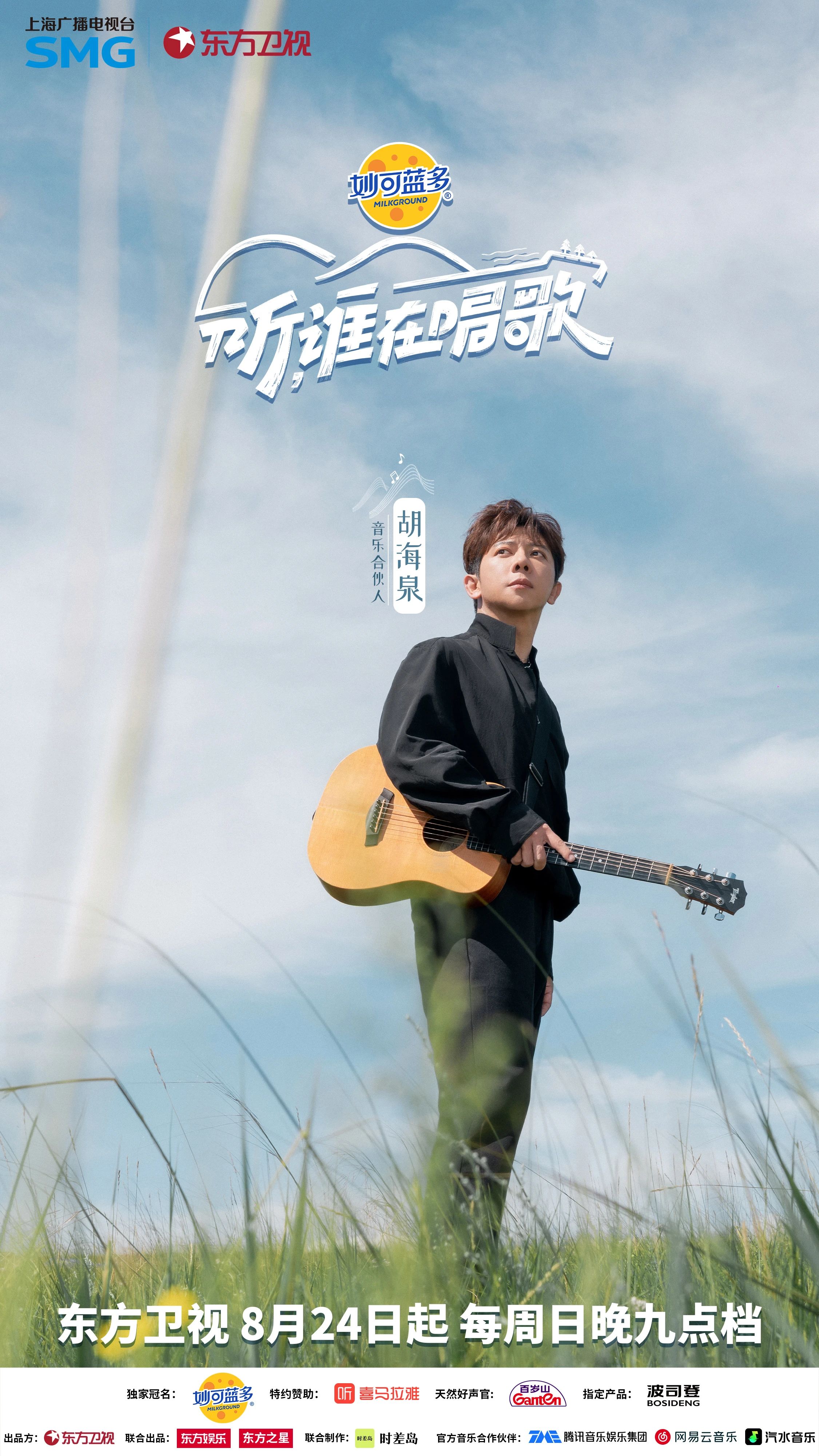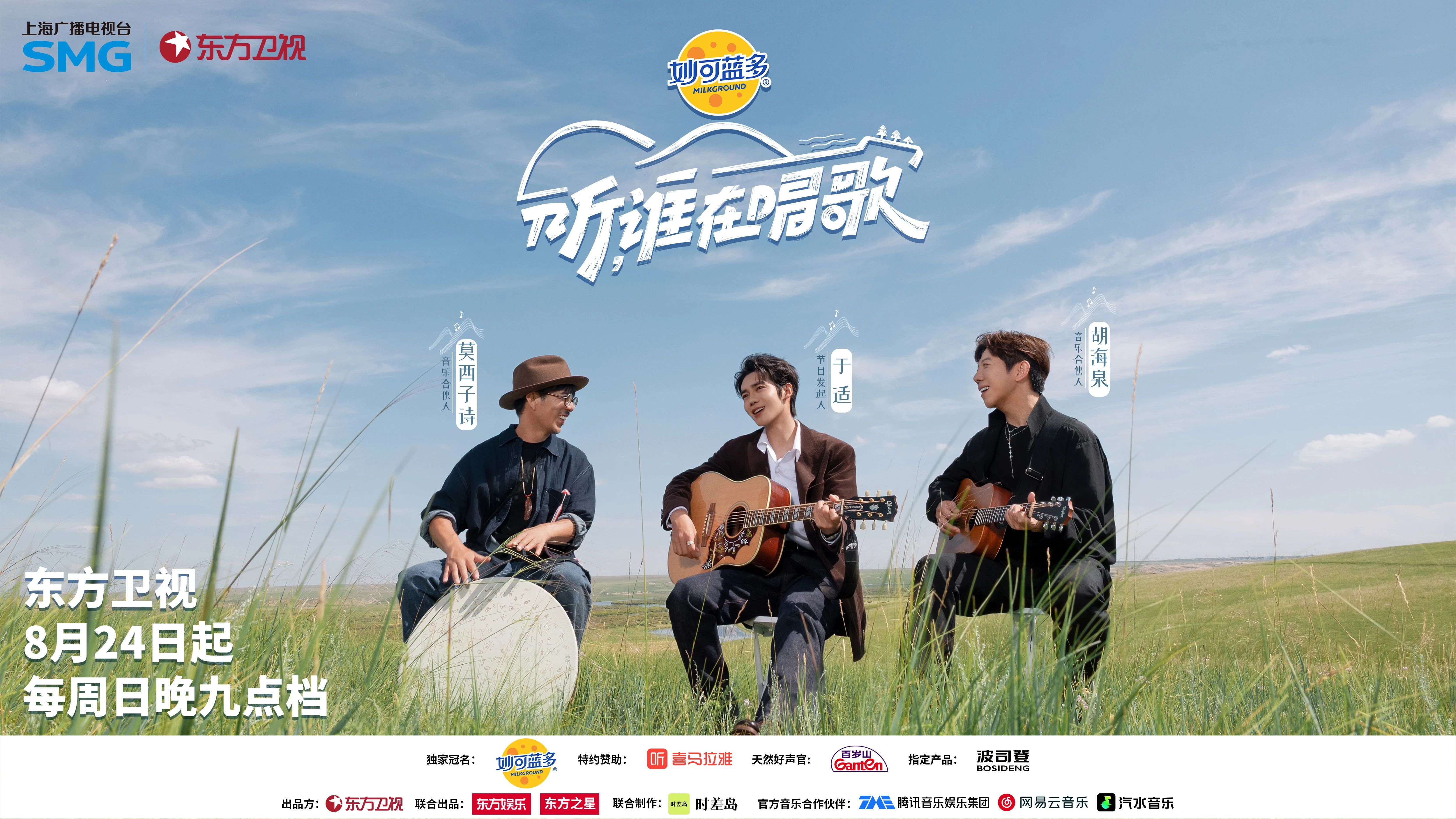 即兴共创音乐采风节目《听,谁在唱歌》今日官宣定档,将于8月24日起每周日晚21:05起在东方卫视播出。节目中,音乐发起人于适将携手音乐合伙人胡海泉、莫西子诗,与飞行嘉宾戴佩妮、韩庚、马頔等国内顶尖音乐人共同组成“寻乐团”,从族群文化和人间烟火中寻找灵感,探寻最深层的中国音乐基因,共同创作并呈现12个震撼人心的“即兴共创”和“大地舞台”LIVE。