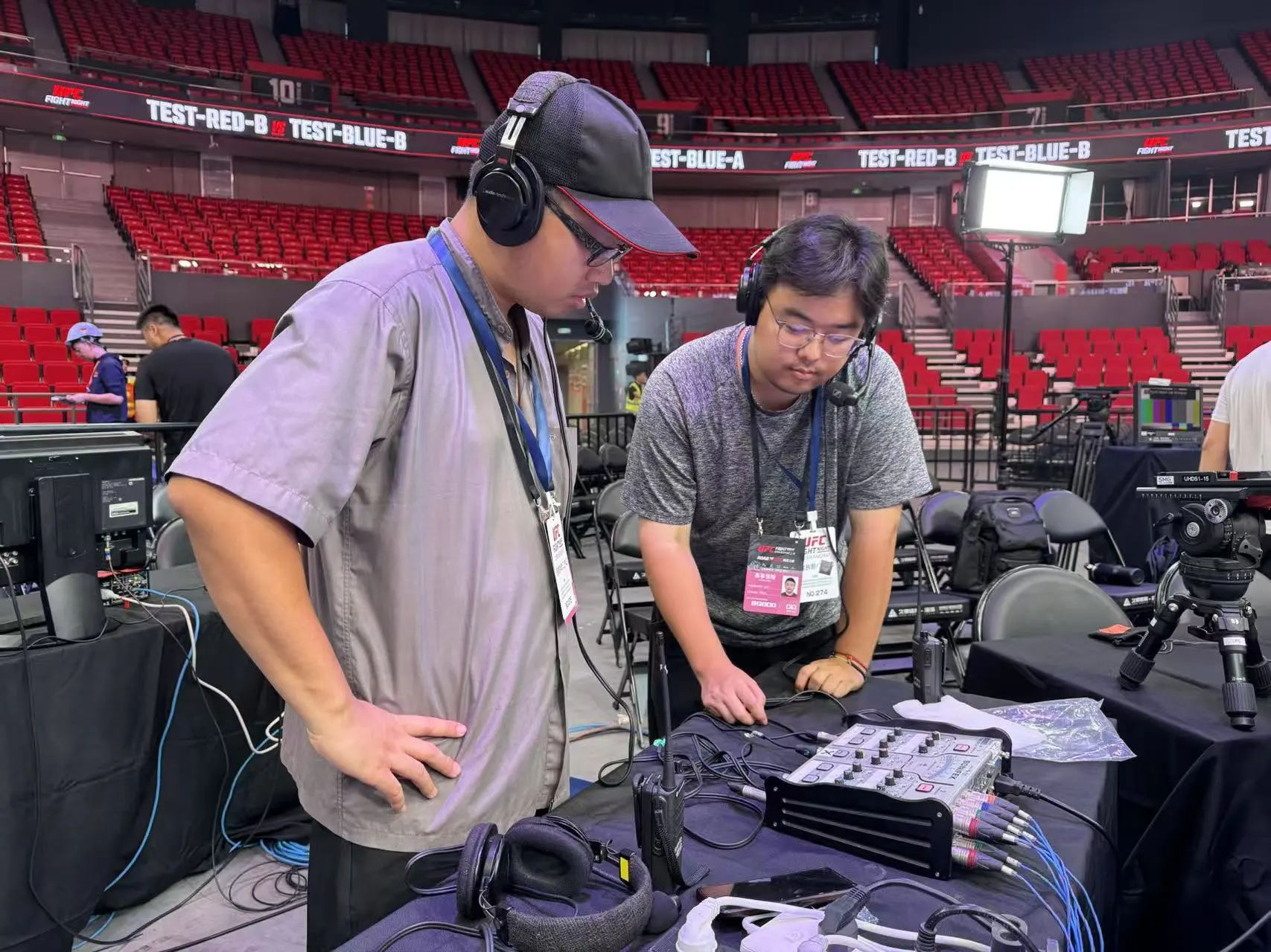 此次UFC赛事中,SMT天鹰转播团队开启高强度多线作战,展现了出色的项目执行与协同能力。