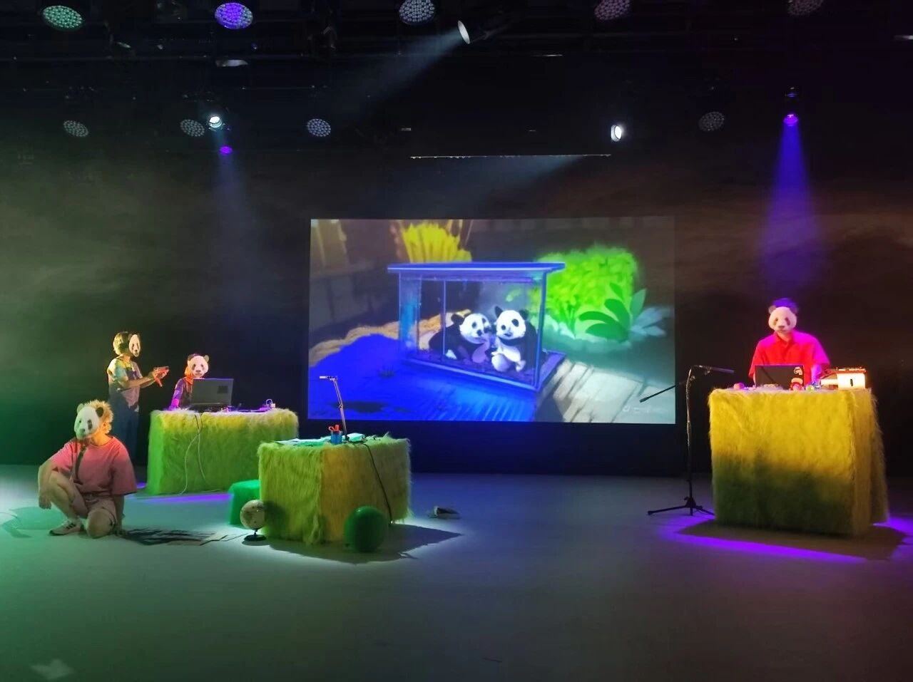 同期,上海话剧艺术中心D6空间上演了中国青年创作者陈然及团队StageNoMore的舞台剧《毛绒小可爱》,通过剧场“云吸猫”的形式,追溯熊猫从早期影像到互联网宠儿的文化演变。