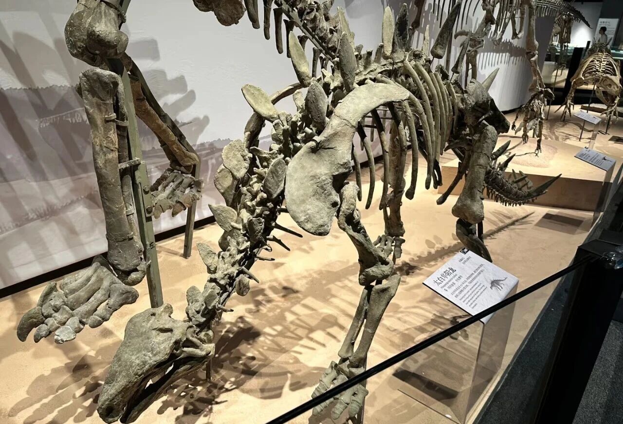 转角遇到的太白华阳龙简直是温柔巨兽。背上整齐排列的骨板像极了武士的铠甲,圆滚滚的肚子让人想rua——难怪会变成抱枕界的顶流。偷偷告诉你们,它的尾刺可是史前防御神器哦。