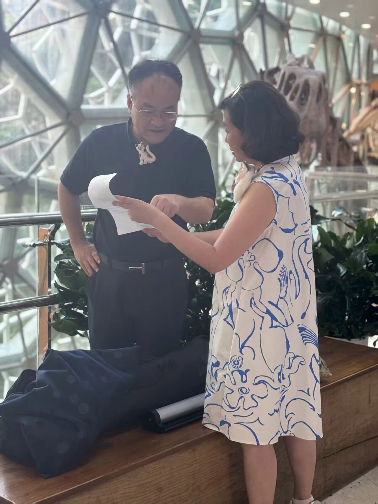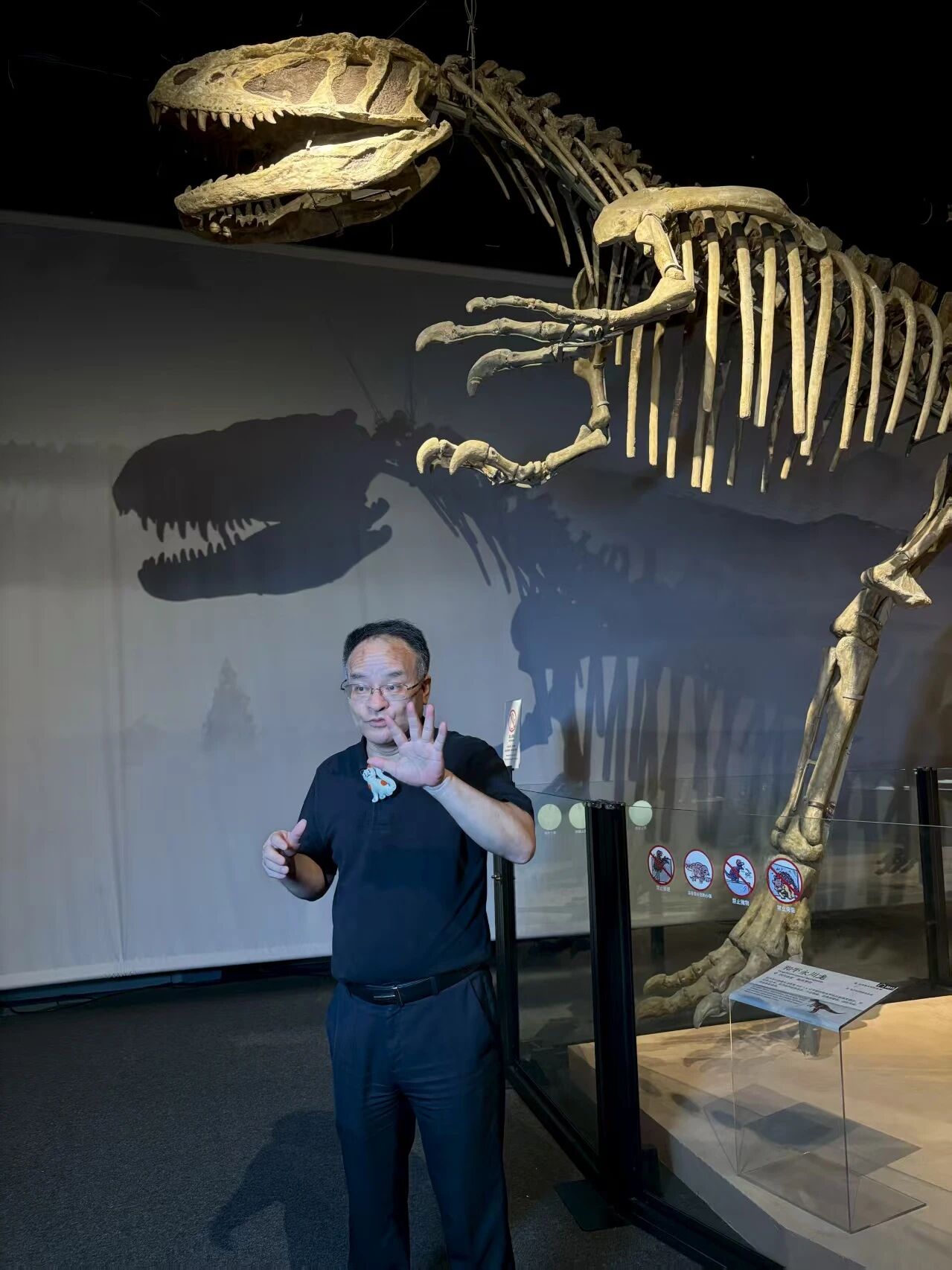 刚进馆就被展厅中央的合川马门溪龙骨架模型震撼到。倪闽景馆长介绍:馆里原来的马门溪龙,戴了好多年梁龙的 “假头”—— 早年化石不全,只能先凑数~好在今年 “恐龙大展” 活动期间,要换上它的 “原装头骨” 啦。这可是真实头骨首次亮相。真头骨比梁龙头更小,牙齿还特适合啃蕨类,换上后就能见识1.5亿年前它的真模样~