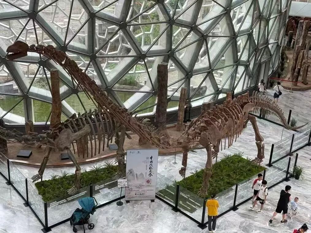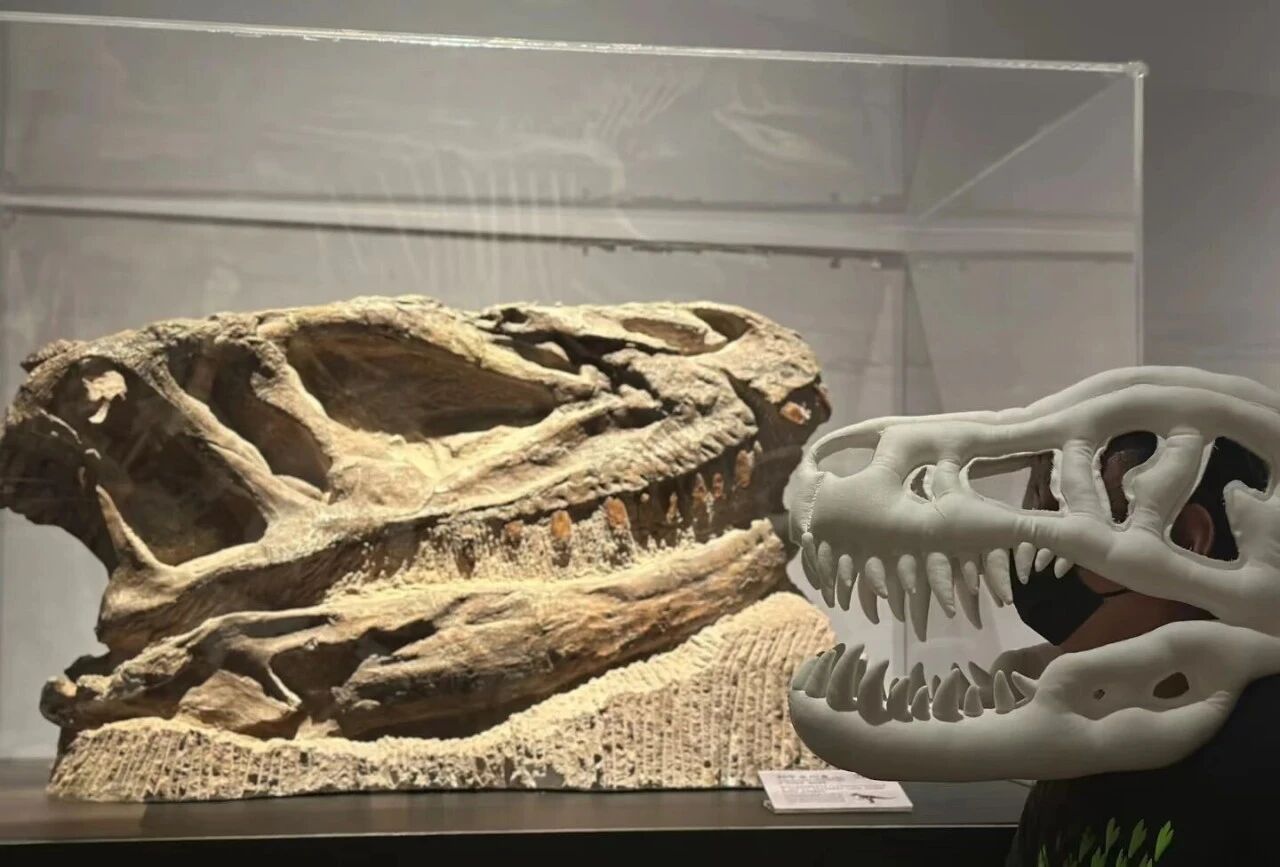 和平永川龙也超级霸气。它是侏罗纪 “陆地霸主”,锋利牙齿能轻松咬碎猎物骨头~展区里的骨架超完整,连爪子上的尖刺都清晰可见。“看东方”卖爆的两种头盔,一种是夜光头盔,一种是镭射头盔,都是照着它的头骨设计的,逛展时对照着看,还能发现好多细节彩蛋呢~