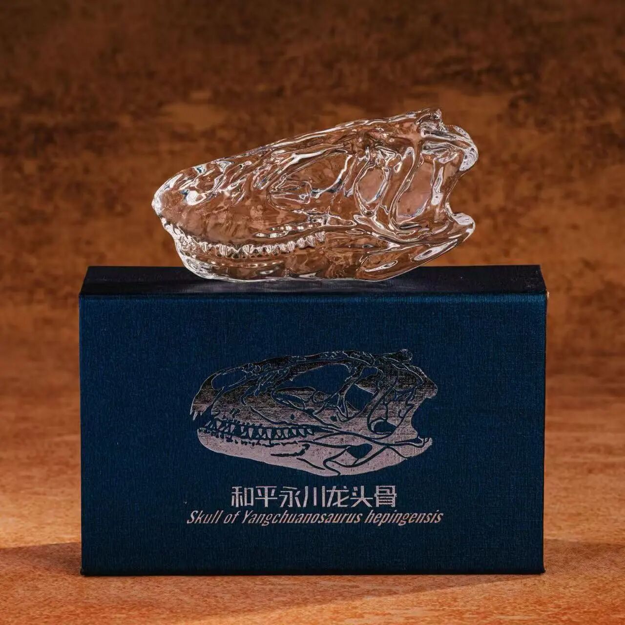 把永川龙的霸气带回家。这水晶内雕简直绝了,将永川龙的头骨完美复刻在剔透的水晶中,每一处纹理都清晰可见,细节满分。摆在书桌上,它就是最亮眼的存在,在灯光下折射出璀璨光芒,带你穿越回恐龙称霸的时代,感受史前霸主的威严。