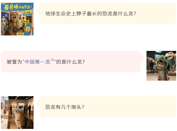 “看展喵” 可不是普通的喵星人,圆溜溜的两小只“P”和“Q”能捕捉展区每一个细节,会卖萌、会答题还能带你 “云逛展”。这次恐龙大展,就由本喵全程陪伴,帮你把史前知识 “嚼碎了” 讲明白~