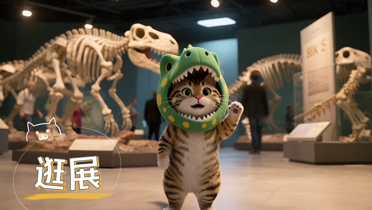 先跟大家正式介绍下本喵~它可不是普通的喵星人,圆溜溜的“看展喵”能精准捕捉展区每一个细节,它知识储备爆棚、会卖萌会答题,不仅能带你“云逛展”,更擅长把硬核知识“嚼碎了”讲给你听——从恐龙化石到奥赛名画,从史前传奇到现代艺术,它用轻松有趣的语态,把高冷展览变成人人爱看的“动态百科”。