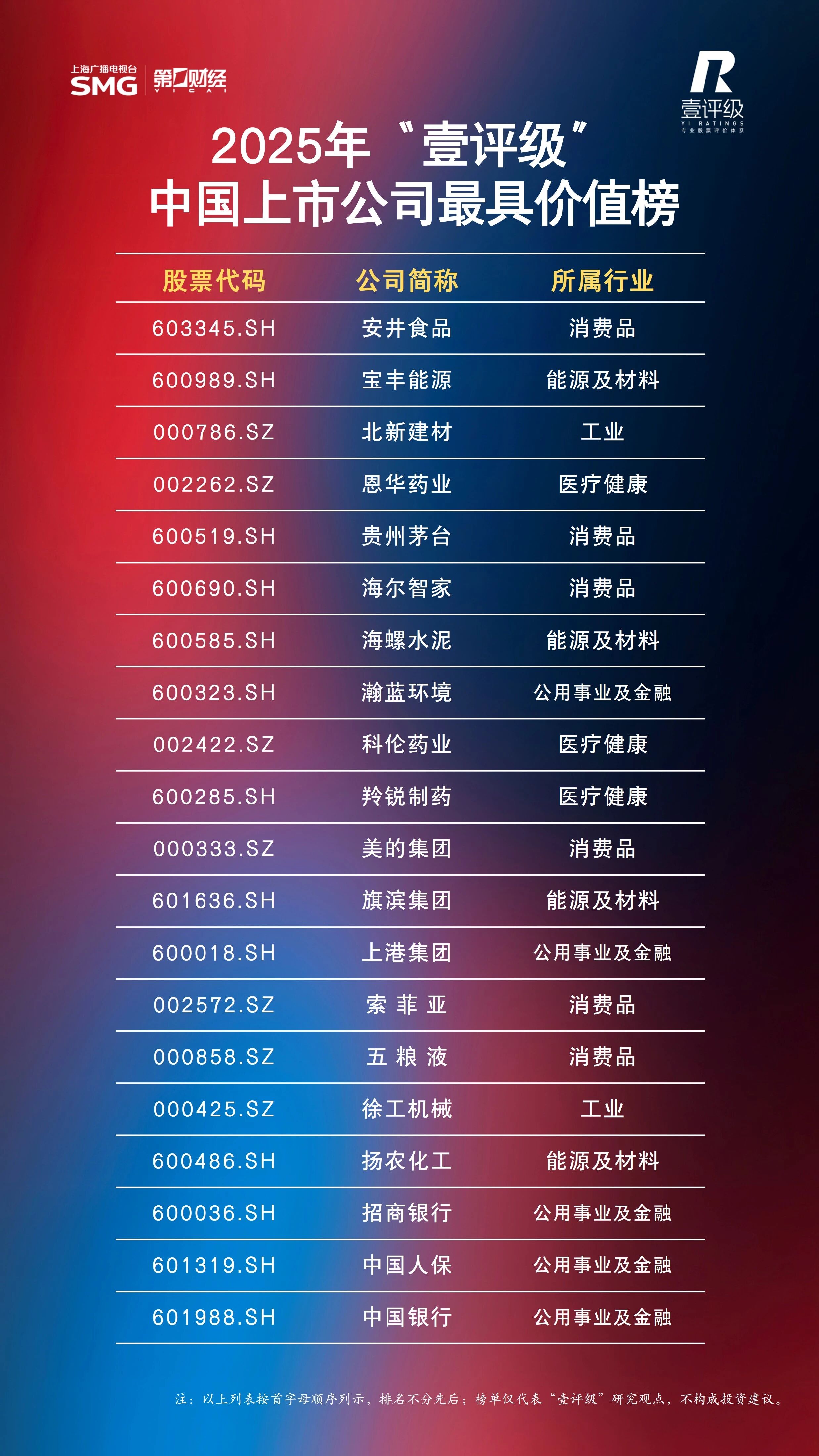 “最具价值榜”通过系统化估值分析挑选出最具长期估值吸引力的中国上市公司。根据最终筛选结果,最具价值榜的20家公司主要聚集在消费、健康等传统行业,这些企业凭借扎实的盈利根基、清晰的产业定位与被低估的成长动能,正在持续波动的市场中构筑长期估值优势。