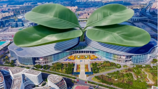 基于AIGC技术 在中国国际进口博览会举办场地国家会展中心(上海)上方生成四叶草
