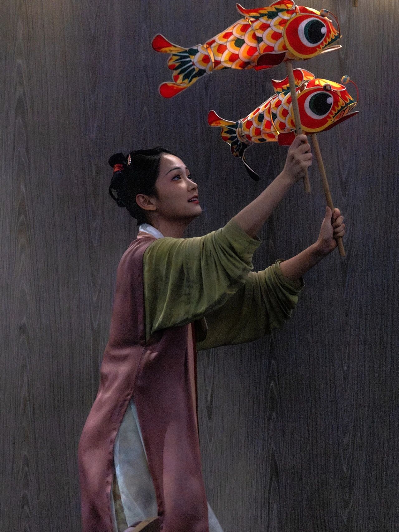 值得一提的是,剧中特别选取古代市井文化中的二鬼摔跤、竿傀儡戏、鲤鱼灯进行演绎,通过两幕之间承上启下的方式,为非遗文化提供了生动呈现的舞台。