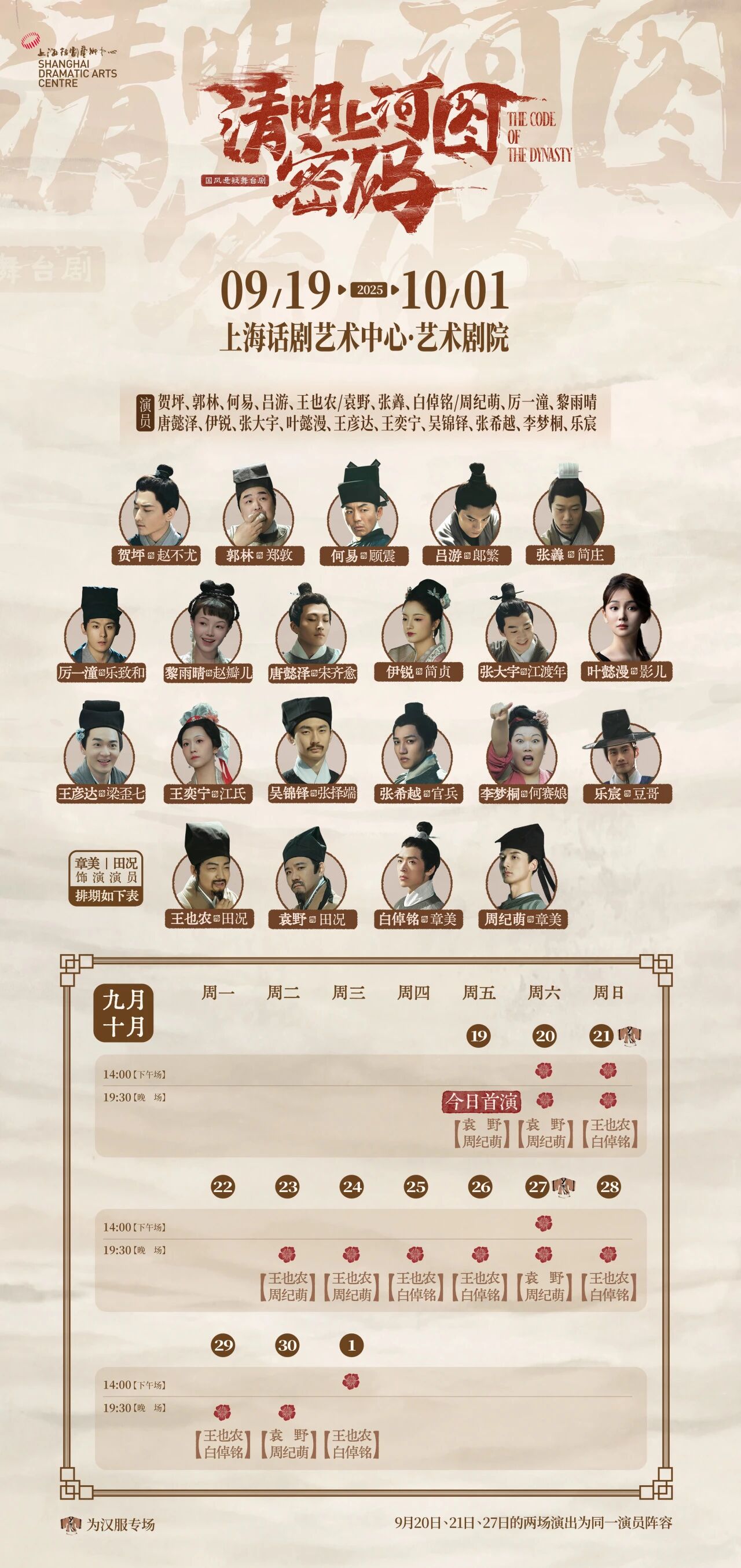 9月19日至10月1日,由上海话剧艺术中心倾力打造的国风悬疑舞台剧《清明上河图密码》在上海话剧艺术中心上演。