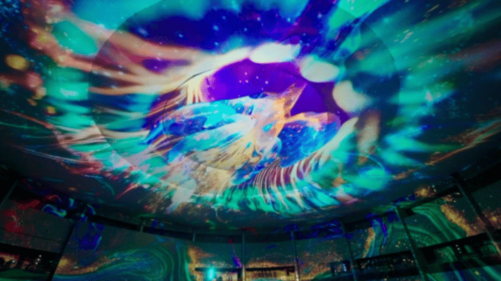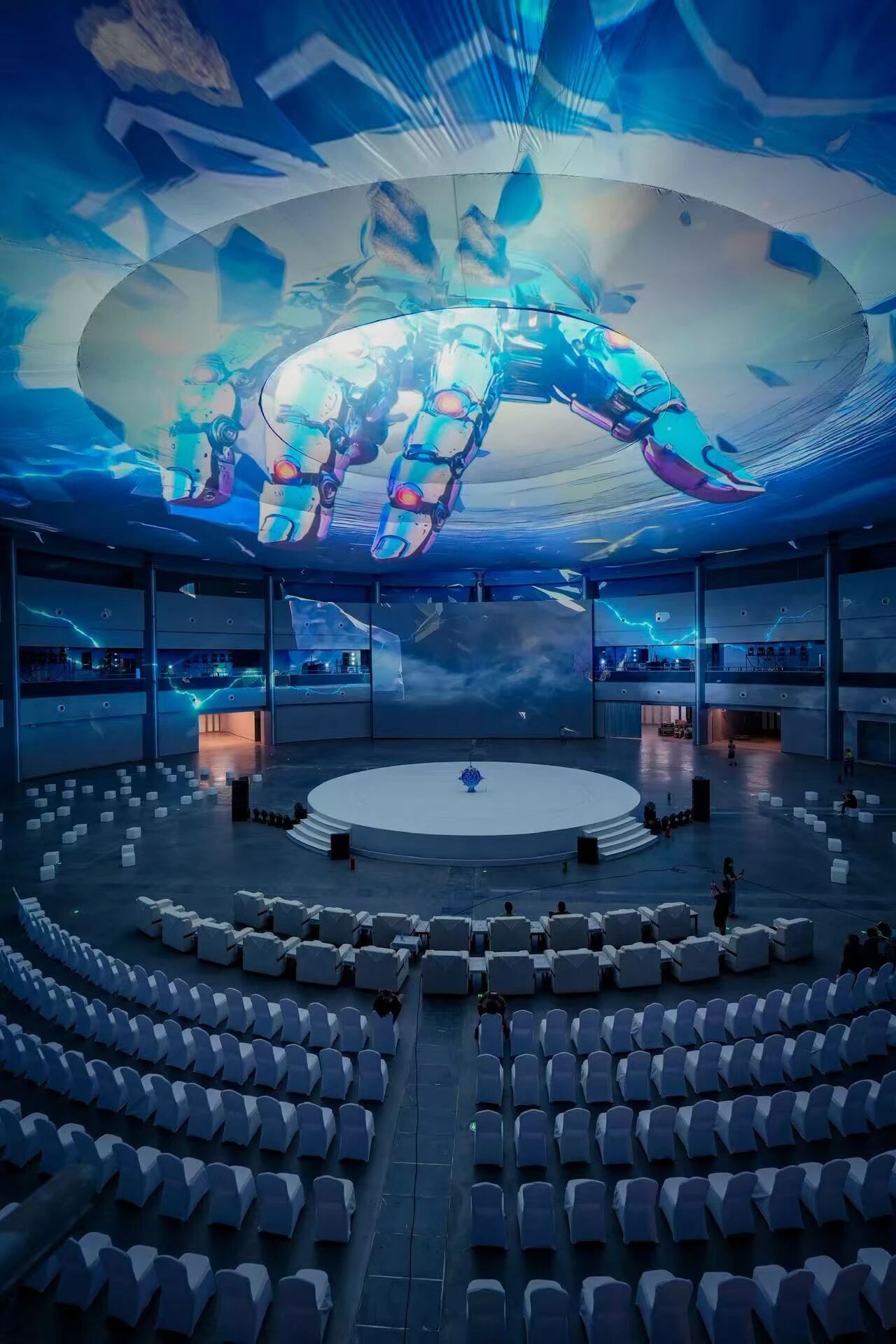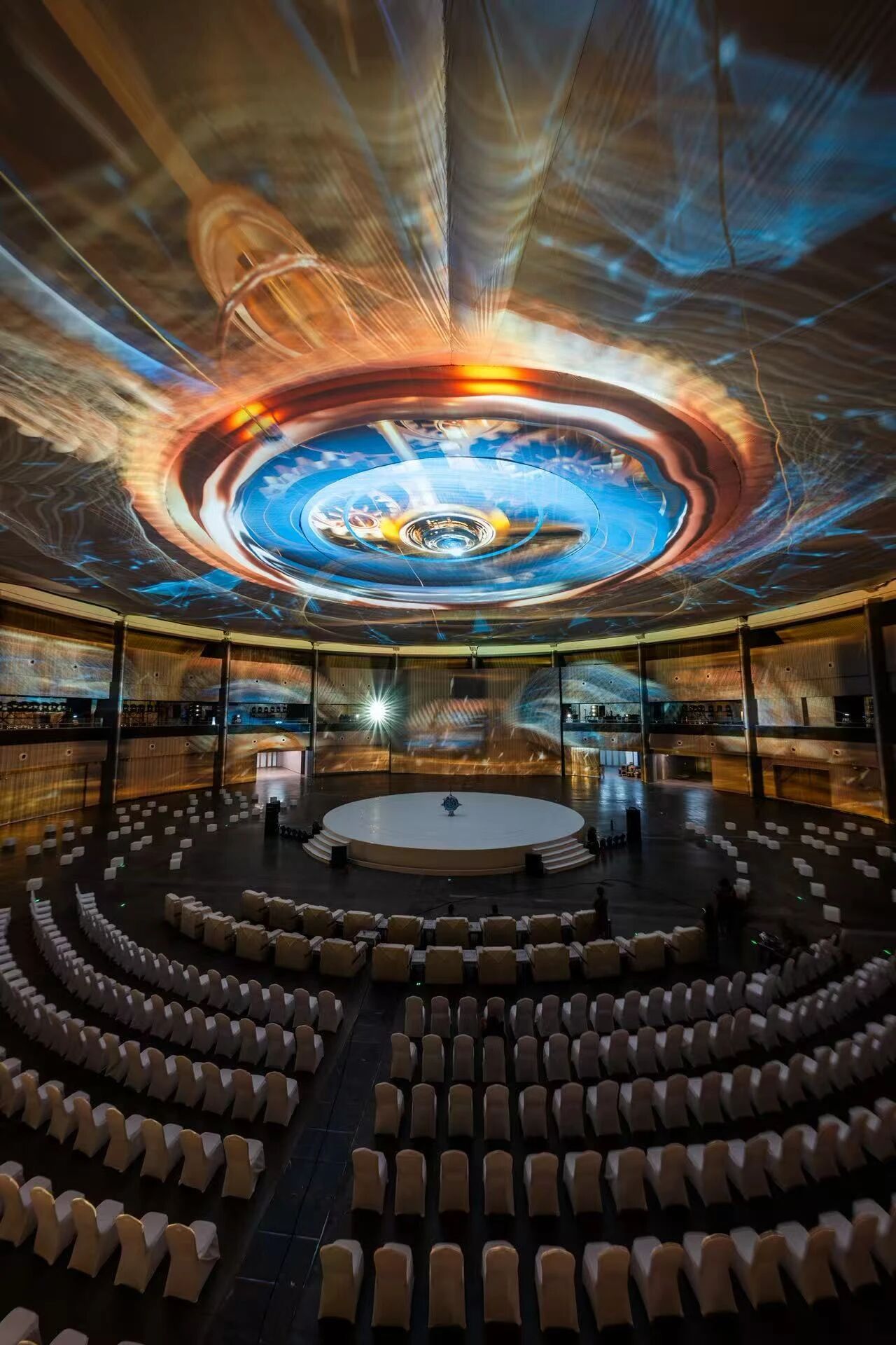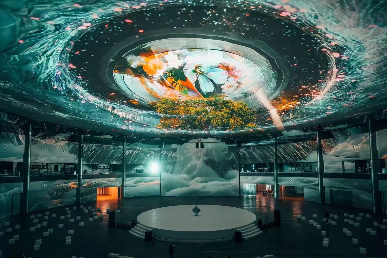 该投影秀大量运用各种模态的AI技术,采用超高清制作流程,以超高分辨率呈现纤毫毕现的画面细节,借助高帧率实现运动场景丝滑流畅,并通过高动态范围(HDR)增强明暗层次表现,广色域技术真实还原丰富色彩,高量化精度则细腻呈现颜色亮度与色彩数量。顶部投影像素画幅达到8000*8000像素,穹顶下部环幕墙体投影像素画幅达到16000*1200像素,配合穹顶建筑360°环绕结构,为观众营造出极具沉浸感的极致视听体验。